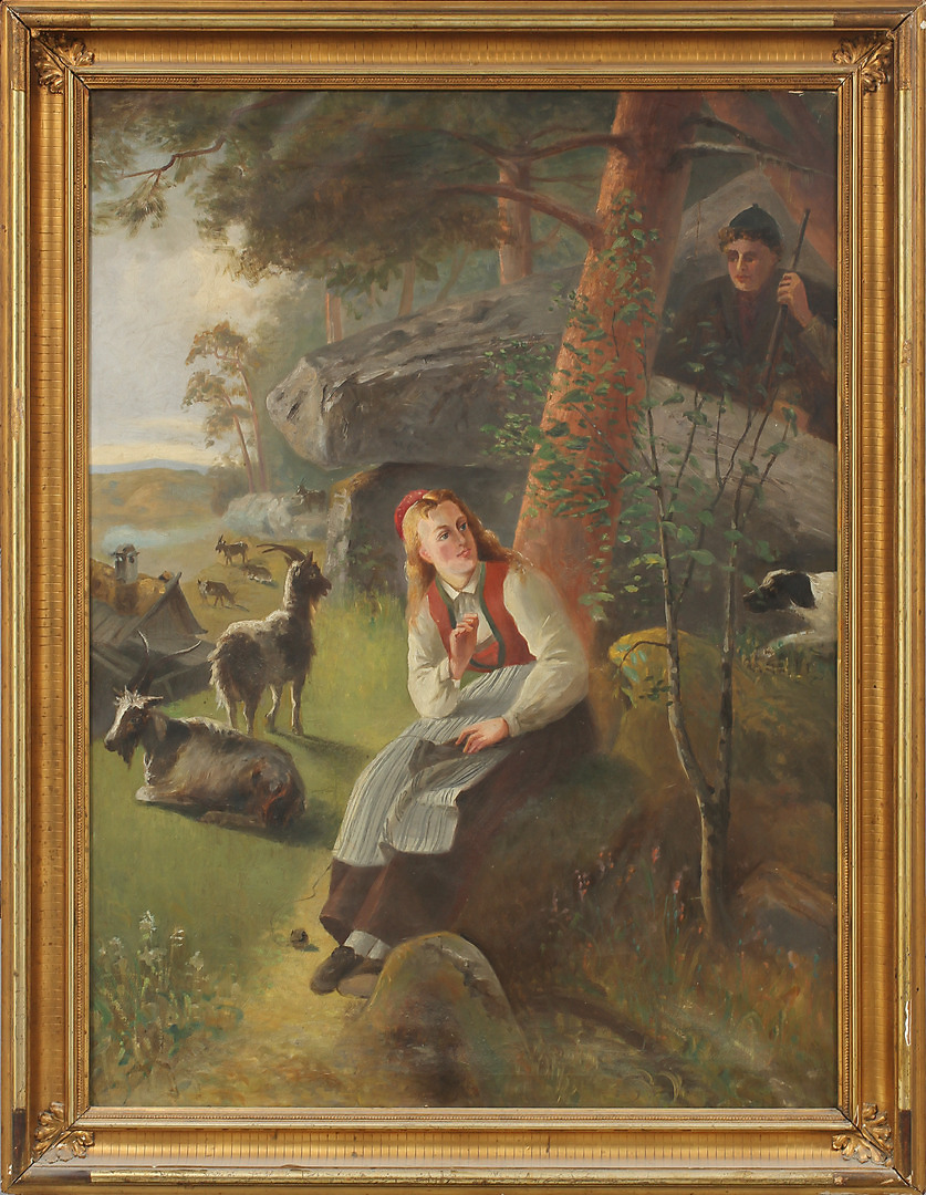 335317. OIDENTIFIERAD KONSTNÄR. Figurscen, olja på duk, kopia.