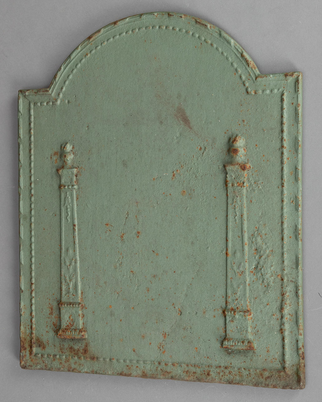 Gjutjärn, målad grön, halvplast dekoration.