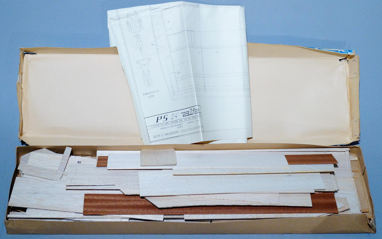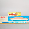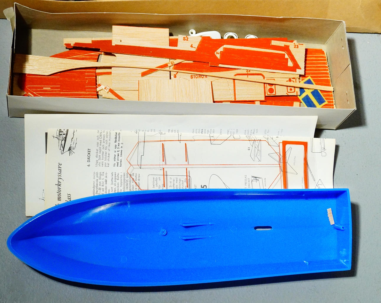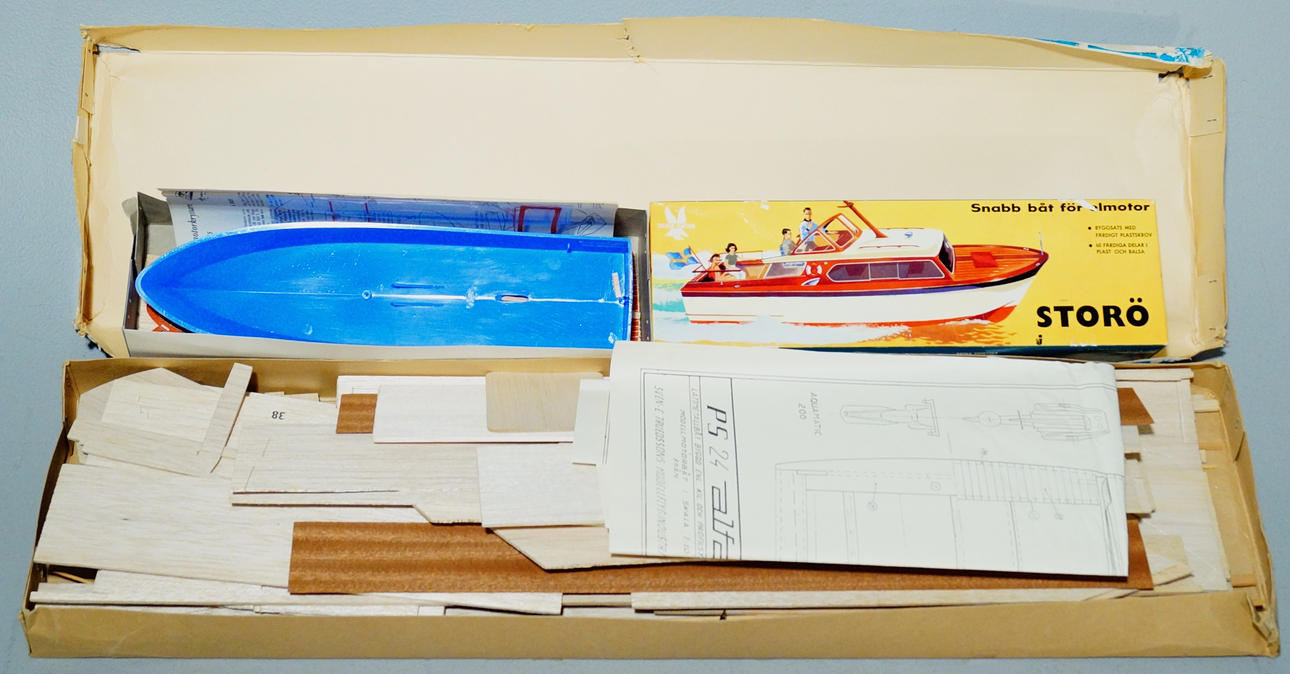 Storö, "snabb båt för elmotor", längd 34 cm Alfa, "modellbåt lämplig för radiostyrning", längd 73 cm.