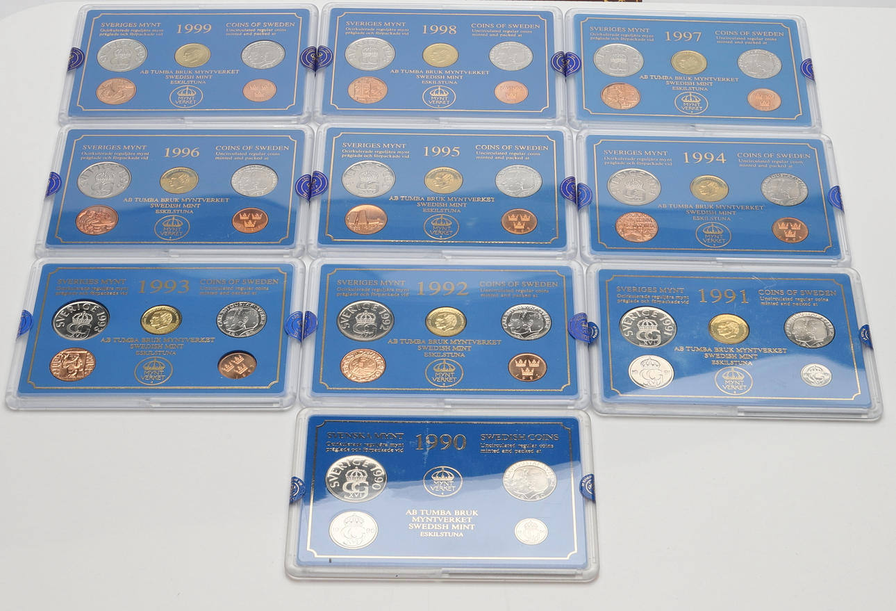 3357156. SAMLARMYNT, "Sveriges mynt", ocirkulerade, 1990-1999.