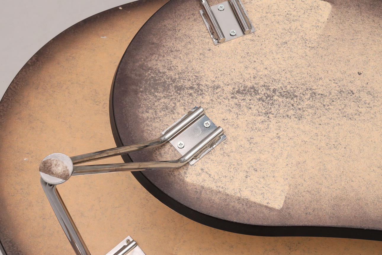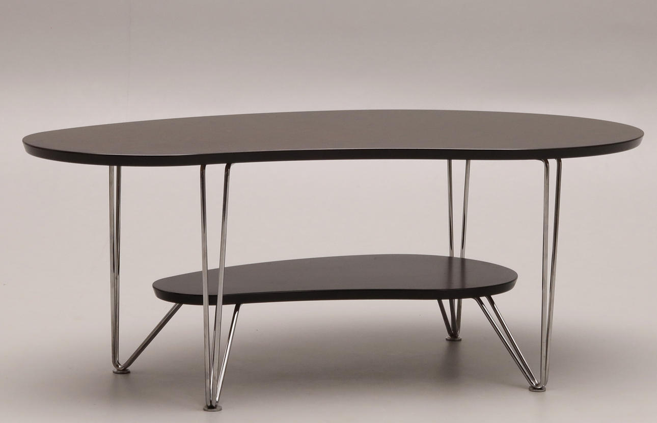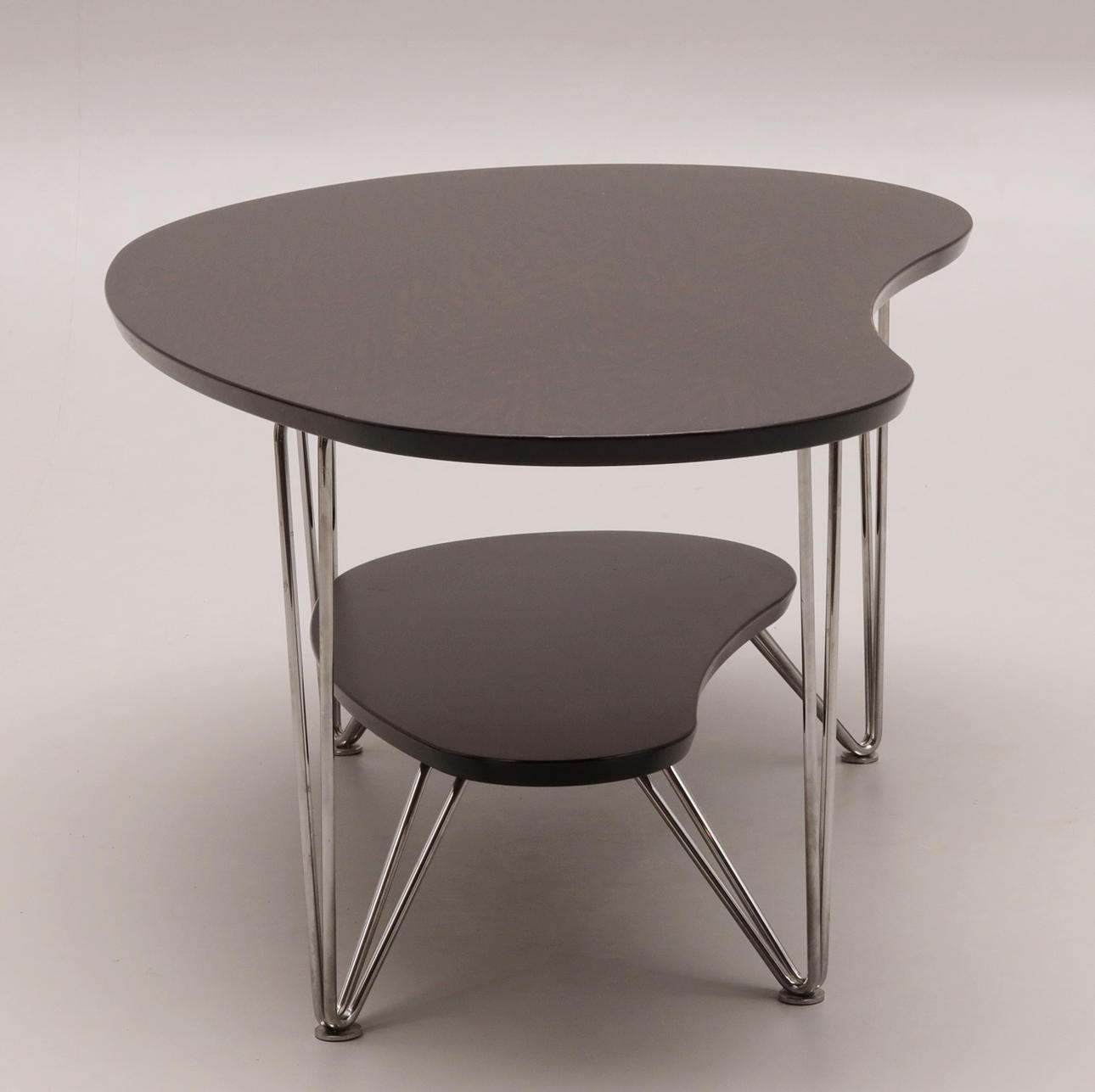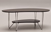 Mörkbetsad ek, kromstativ. 130x70 cm, höjd 50 cm.