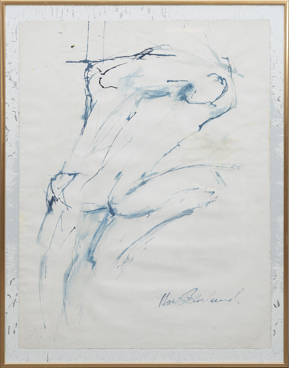 MARI SÖDERLUND. Figurkomposition i blått, blandteknik, signerad.