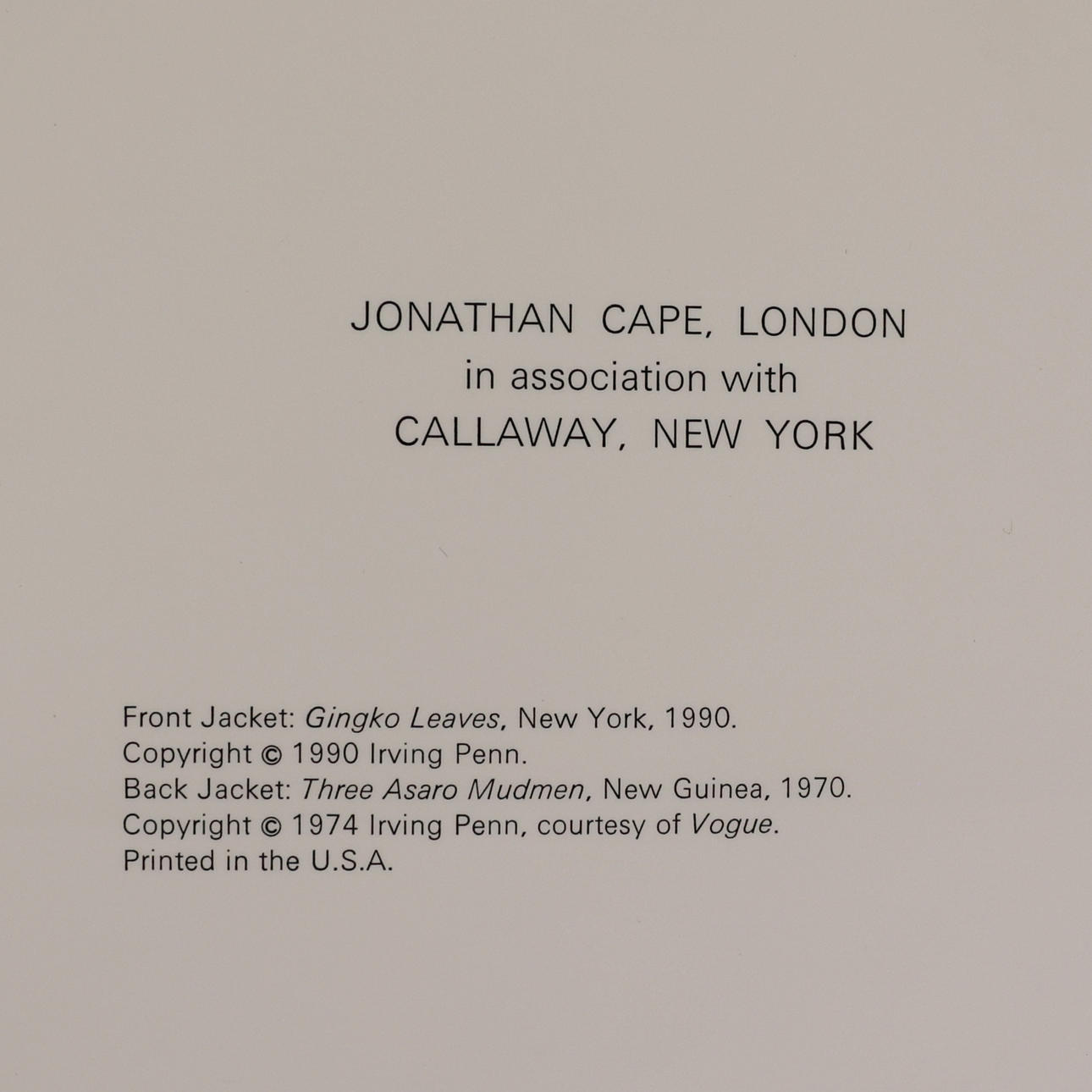 1 edition 1991. Irving Penn, amerikansk fotograf, (1917-2000). I samarbete med Alexandra Arrowsmith and Nicola Majocchi och introduktion av Alexander Liberman. Bok med grått linneband med svart ryggtext. Fotoillustrerat skyddsomslag med text i svart. 468 fotoreproduktioner varav 71 i färg. 300 sid.