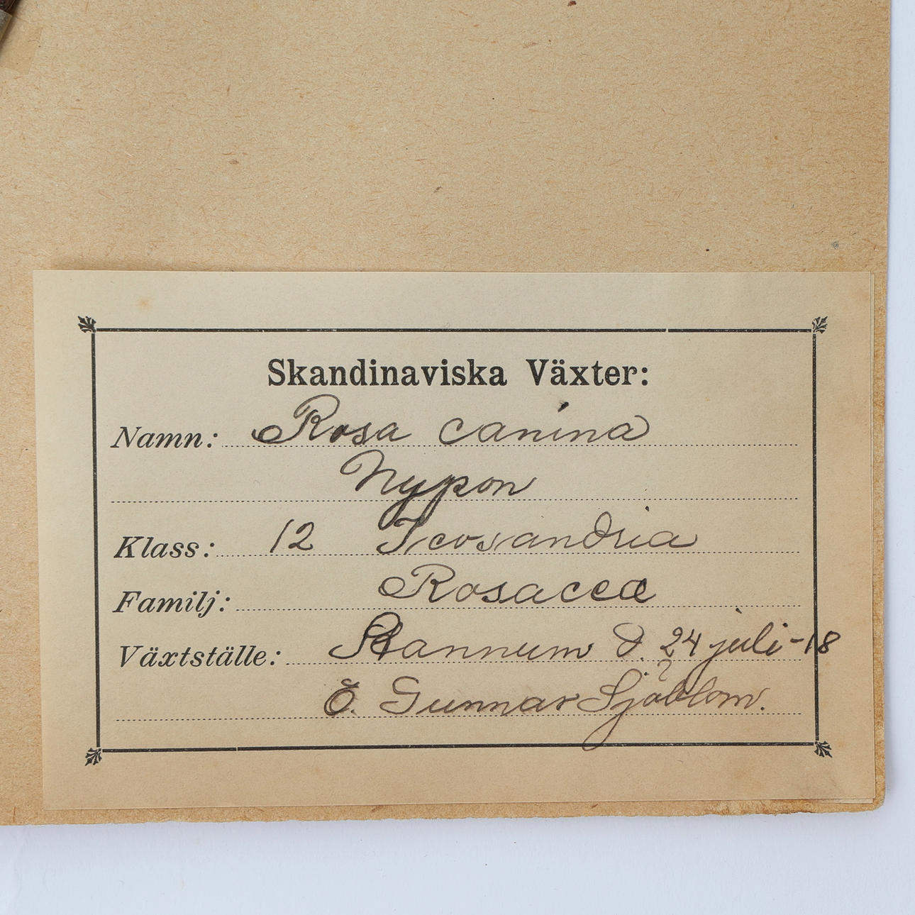 Växter noggrant katalogiserade med namn, klass, familj, växtställe och datum.