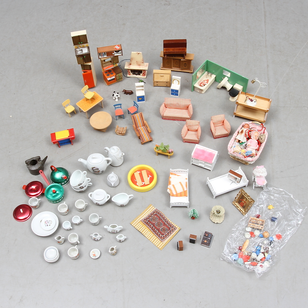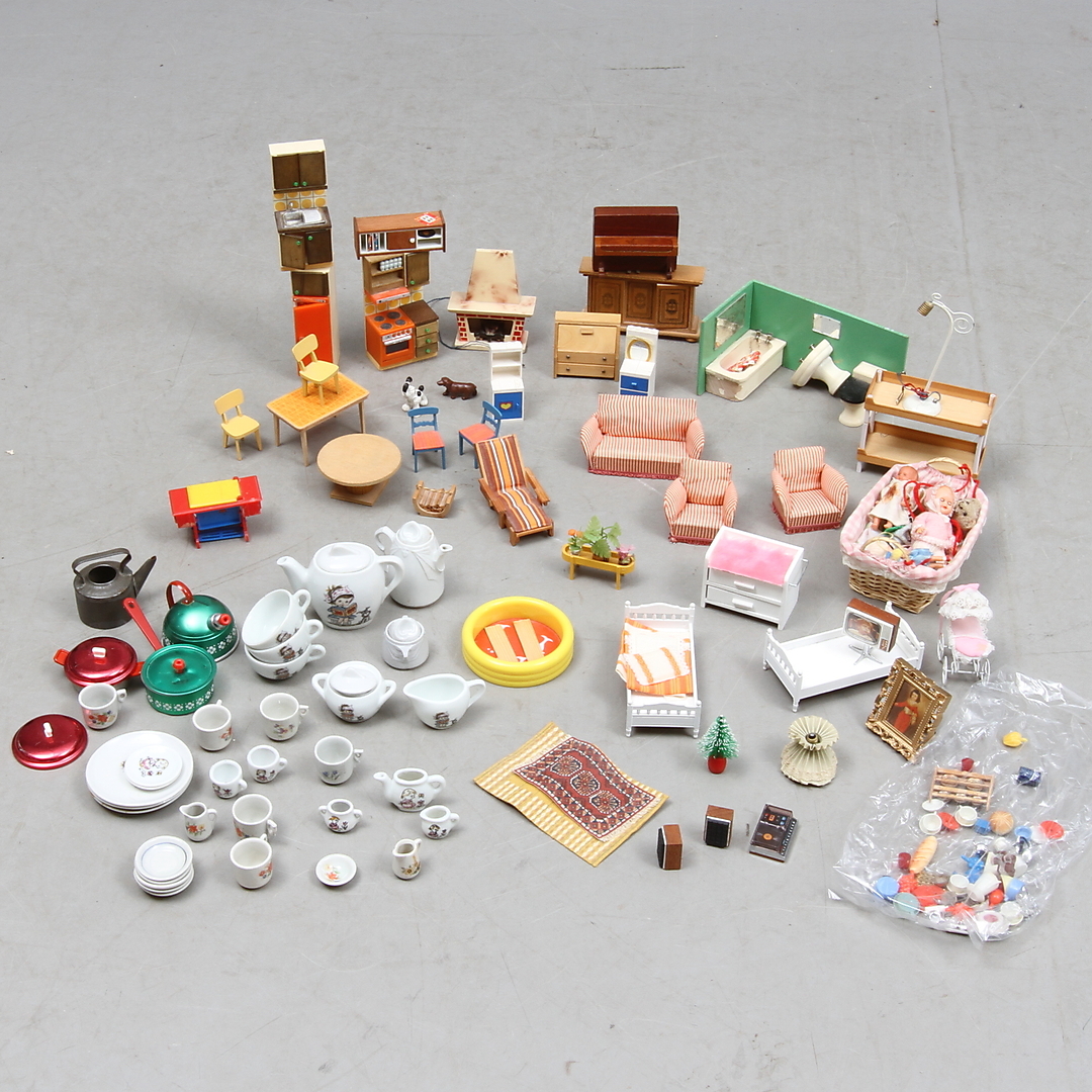 336184. DOCKSKÅPSMÖBLER, kastruller och porslin.