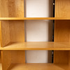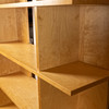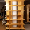 Bokhylla, med öppna gavlar, Demonterbar, Vertikala bärande stöd är fästade med olimmade trätappar i hyllplanen. Hyllorna är tillverkade år 2001 för Johan Celsings arkitektkontor på Fiskargatan i Stockholm.