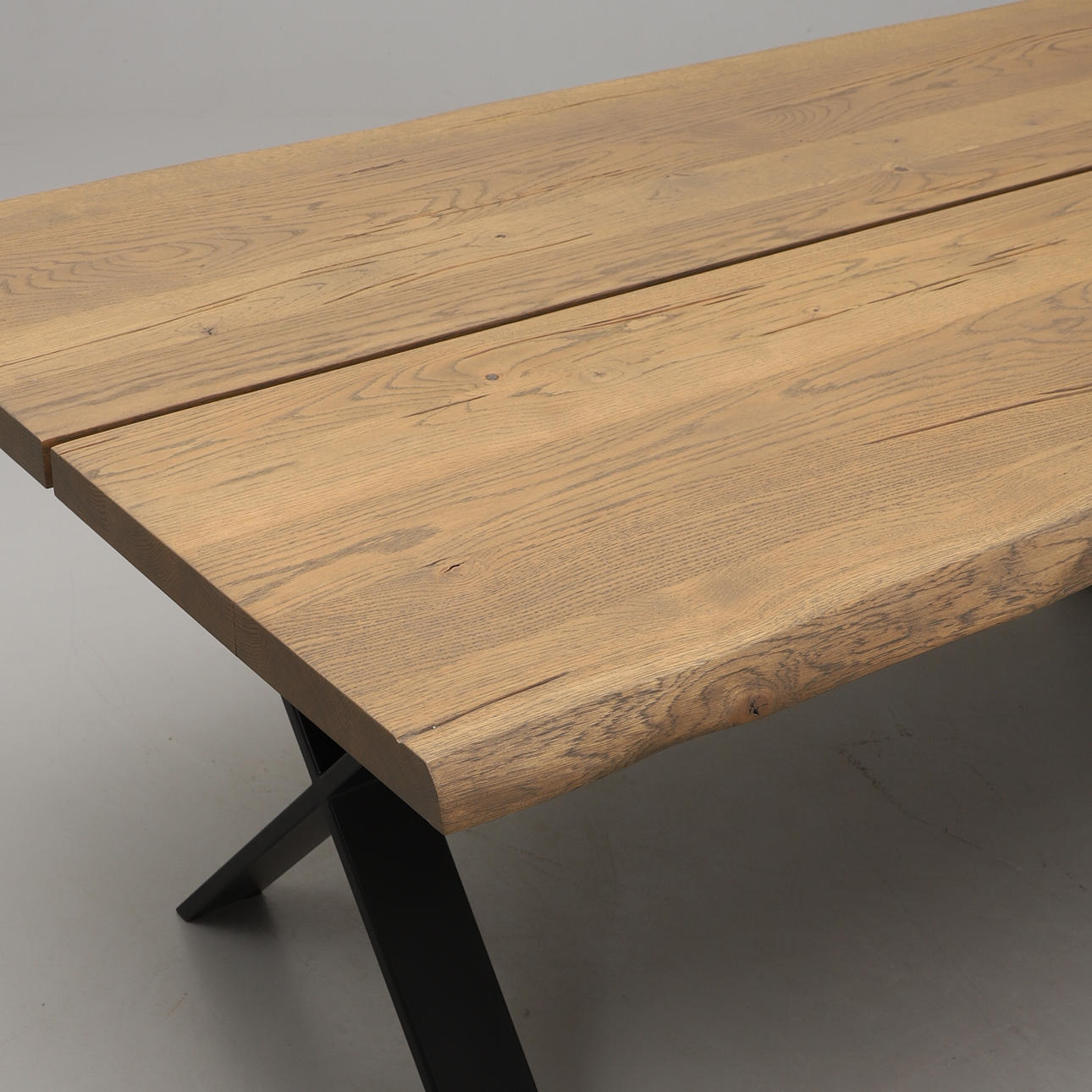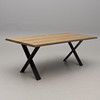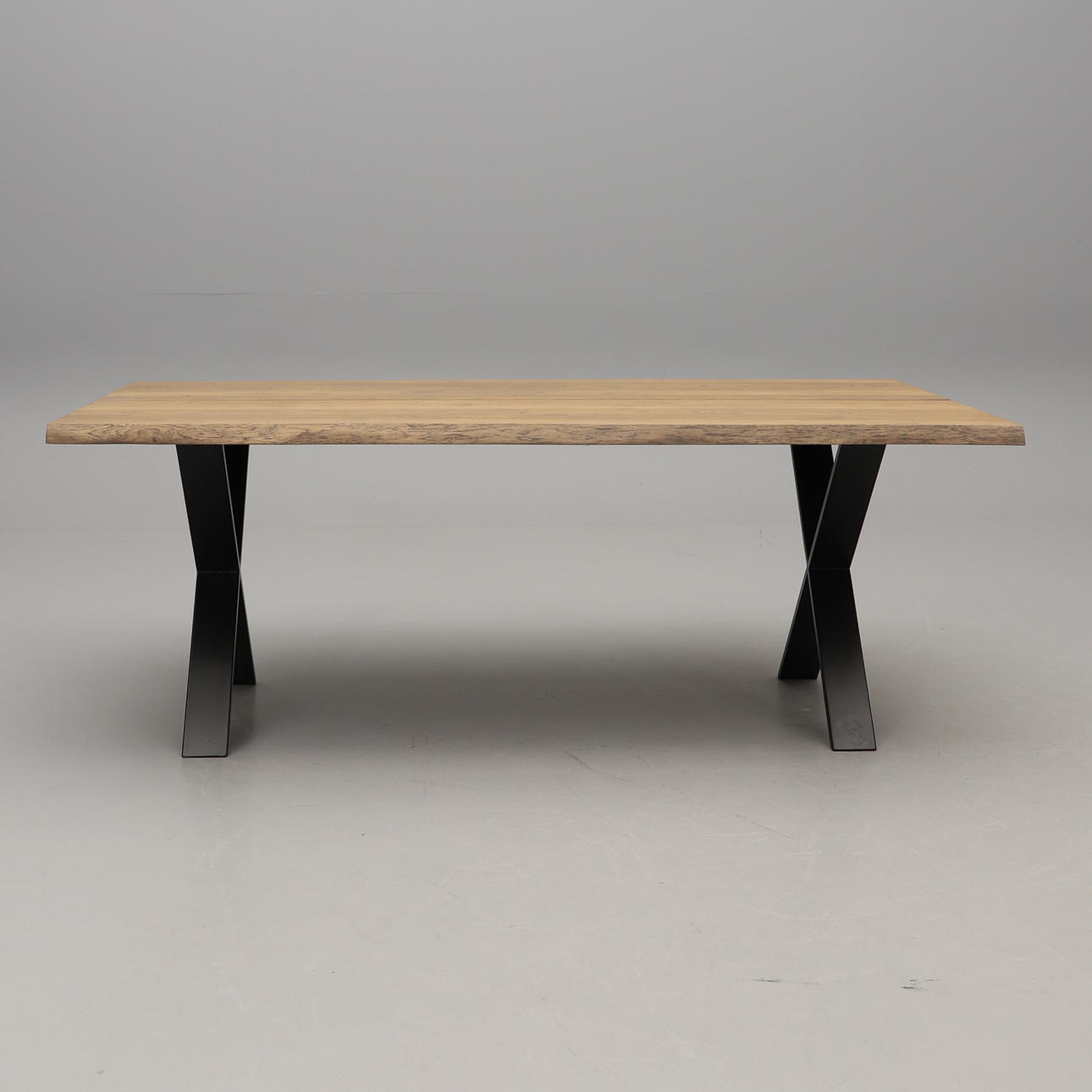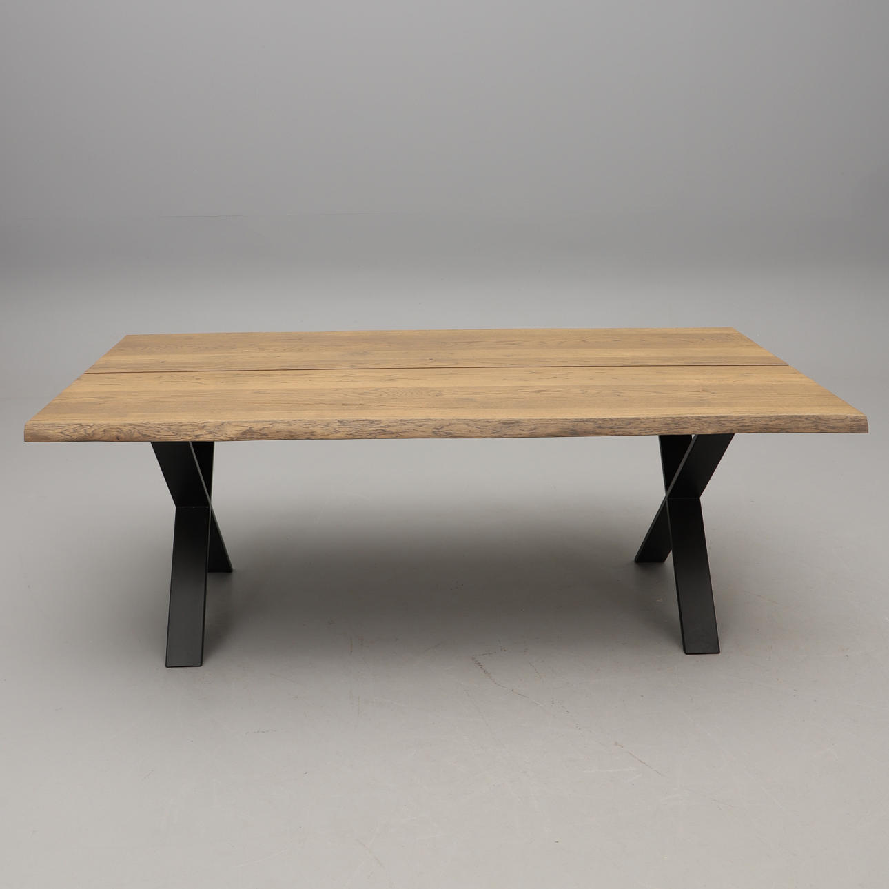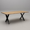 Bordsskiva i ek. Stomme i metall. Brickmärkt. Längd 200, bredd 100, Höjd 75 cm.