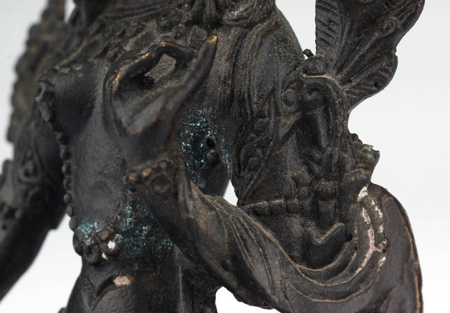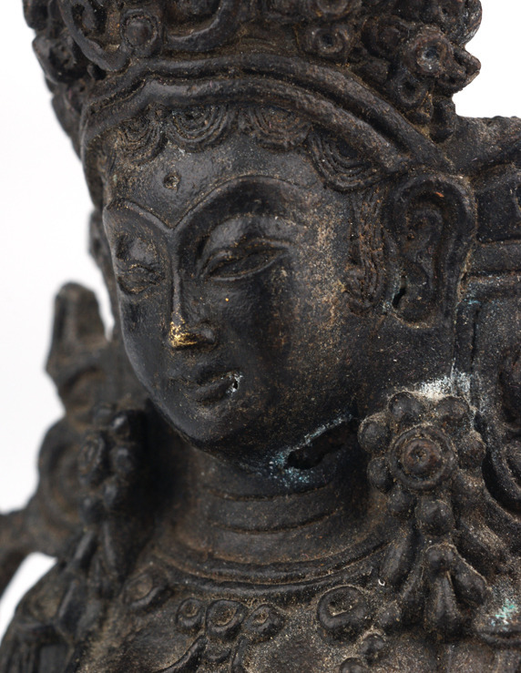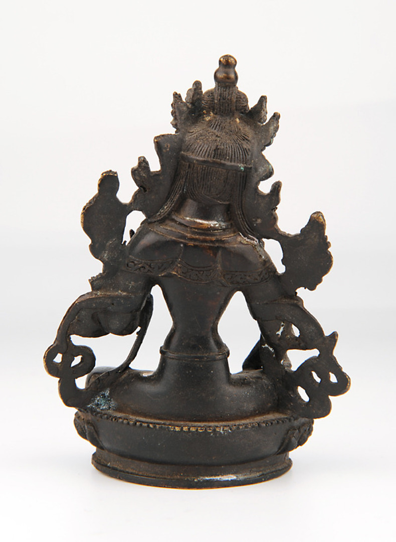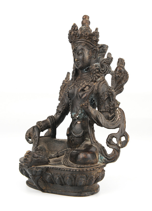 336369. BUDDHA / BODHISATTVA. Mudra sitter på tronen, patinerad brons.