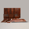Jakarandafanerat. Bestående av 6 väggpaneler à bredd 60, höjd 200 cm, 2 st à bredd 30, höjd 200 cm. 6 panelförhöjningar à bredd 60, höjd 39, 4 à bredd 40, höjd 39 cm.