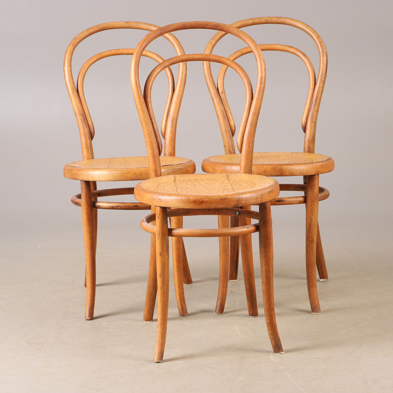 3365233. STOLAR, 3 stycken, böjträ, tidigt 1900-tal.