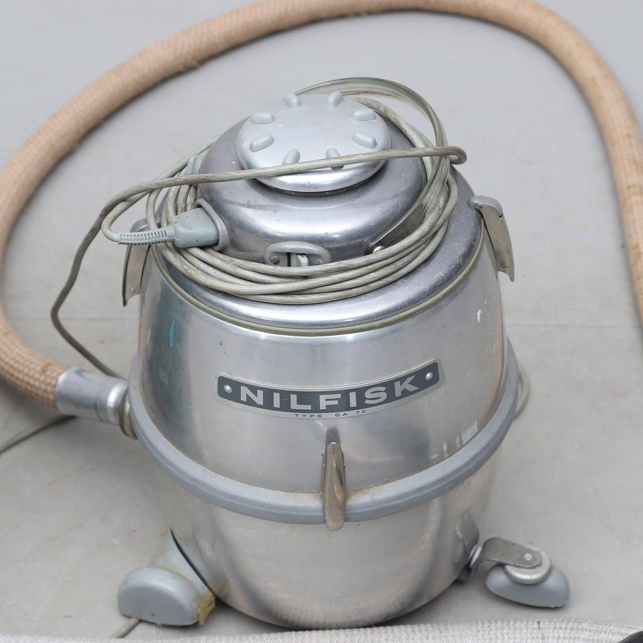 Dammsugare, Electrolux Electronic 318, längd ca 60 cm. Dammsugare, Nilfisk typ GA 70, höjd ca 42 cm.