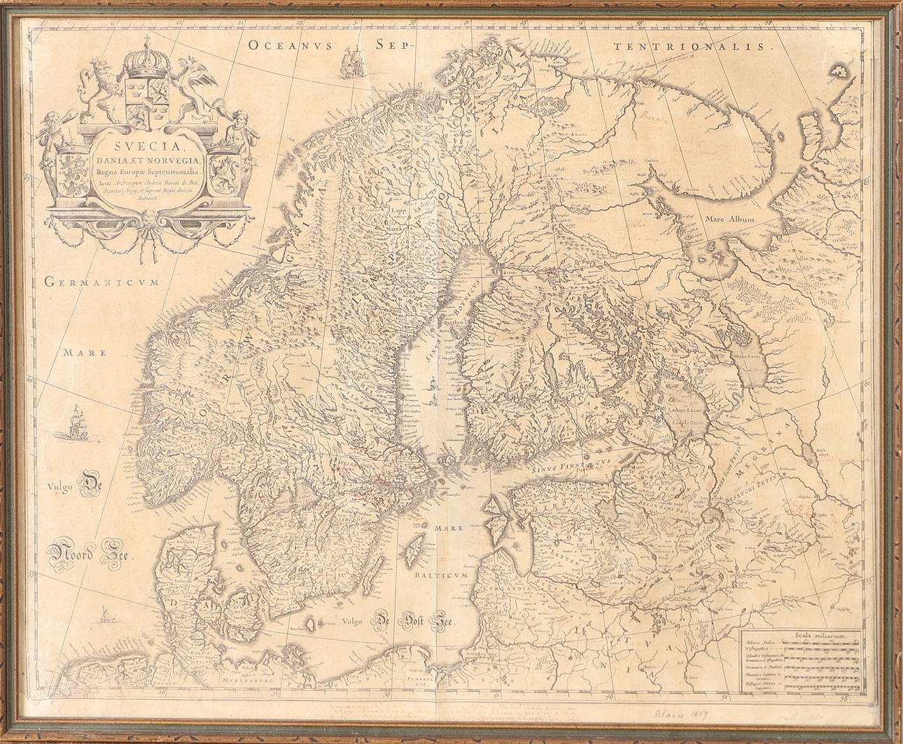 3369817. KARTA, Sverige Danmark samt Norge, tryck efter äldre förlaga.