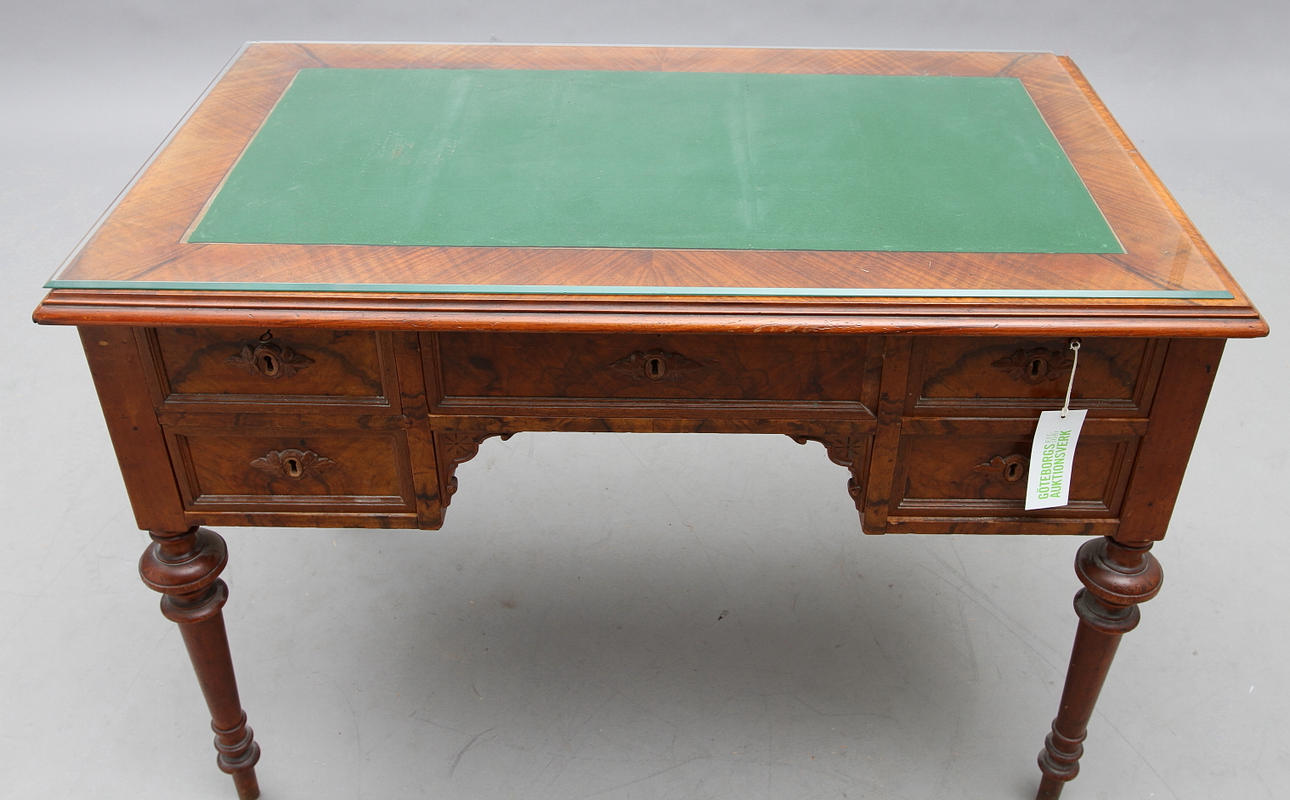 Rotfaner, 5 lådor samt glasskiva. Längd 110, bredd 63, höjd 78 cm.