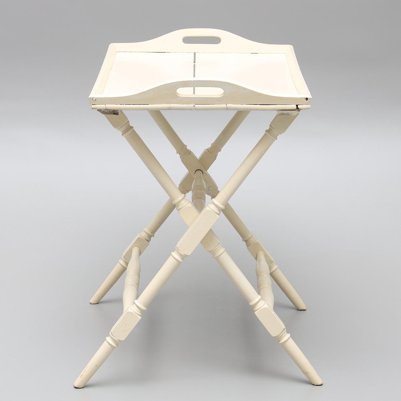 Höjd 75 cm, brickan mäter 82 x 49 cm. Senare bemålad.