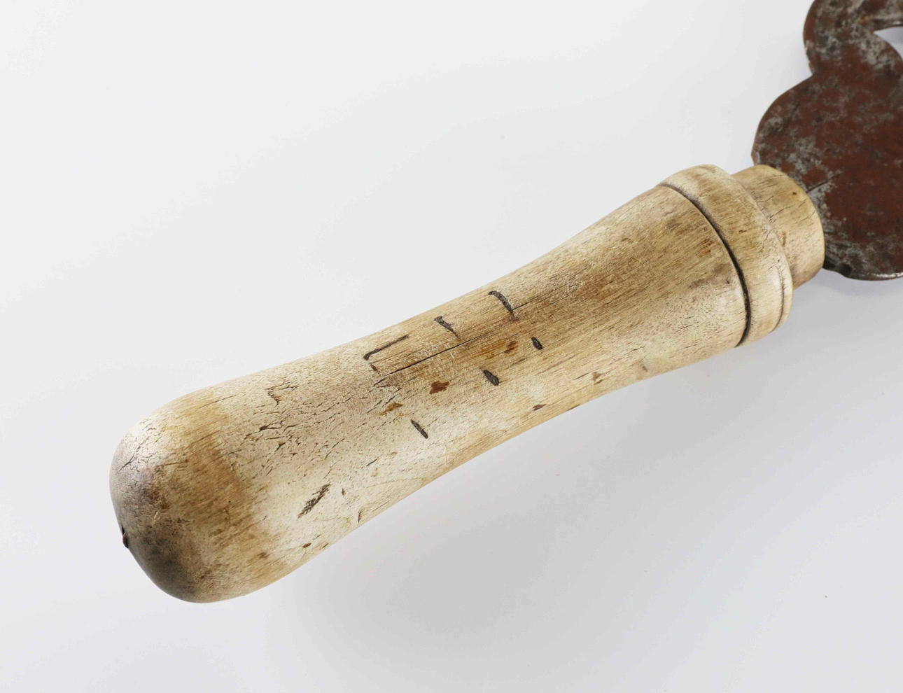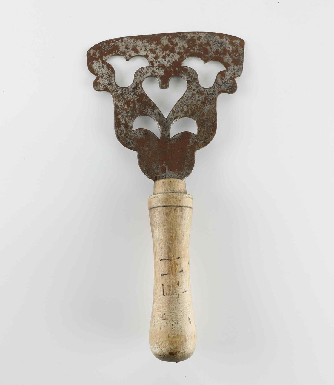 hjärtformiga urtagningar, svarvat skaft. Längd 32 cm Bredd 16 cm.