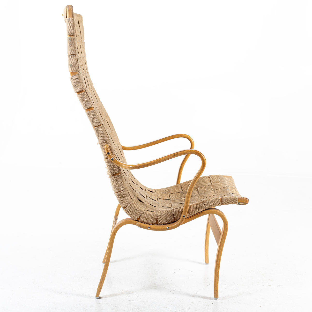 3373576. BRUNO MATHSSON. BRUNO MATHSSON. Fåtölj "Eva hög", Brännmärkt Bruno Mathsson Design, Made in Sweden.