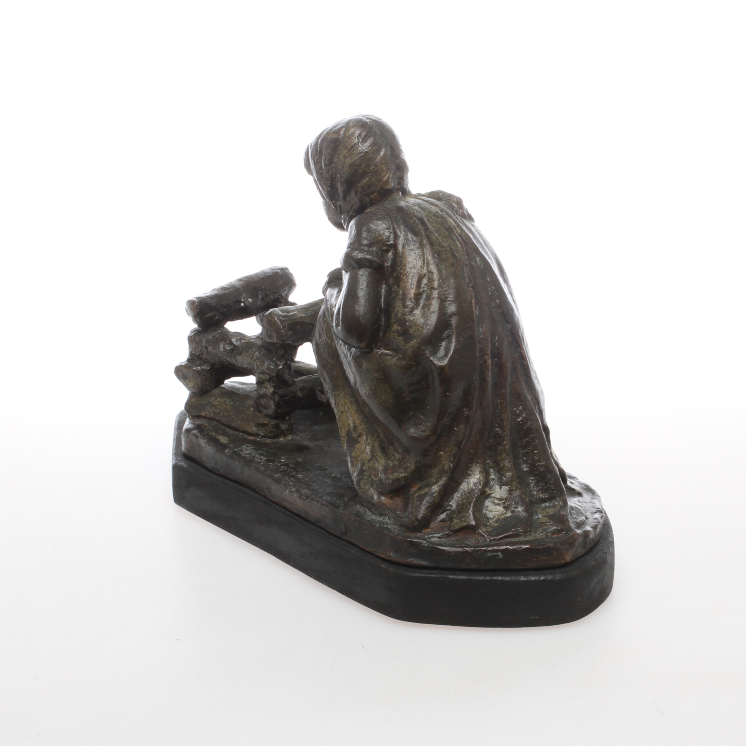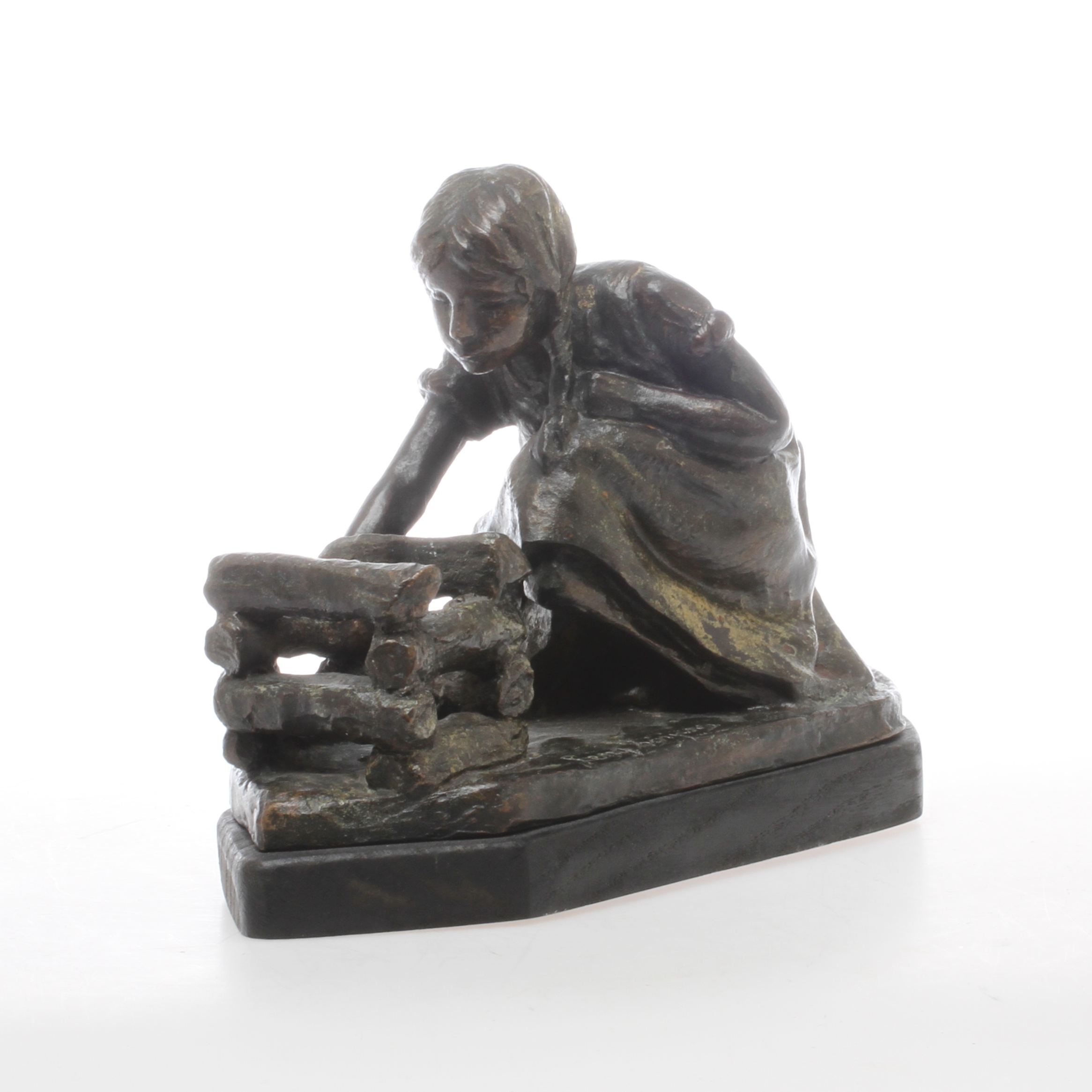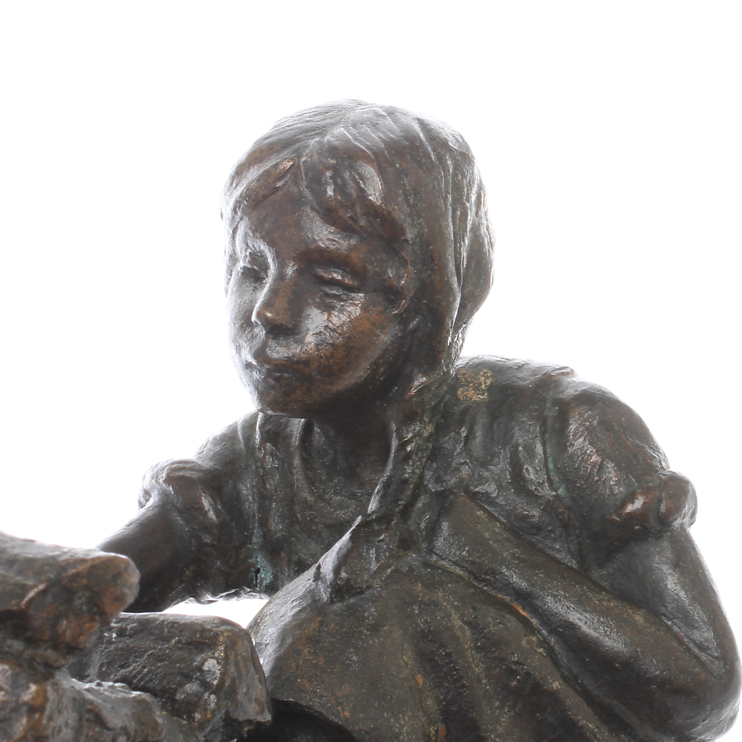 337428. LENA BÖRJESSON. Flicka vid brasa, brons, signerad.
