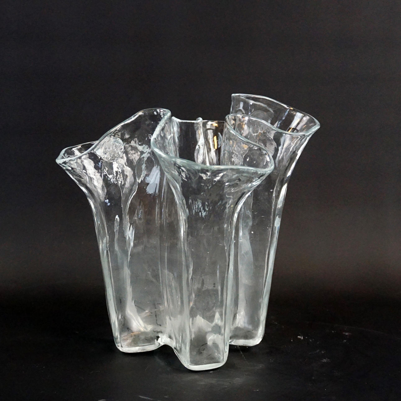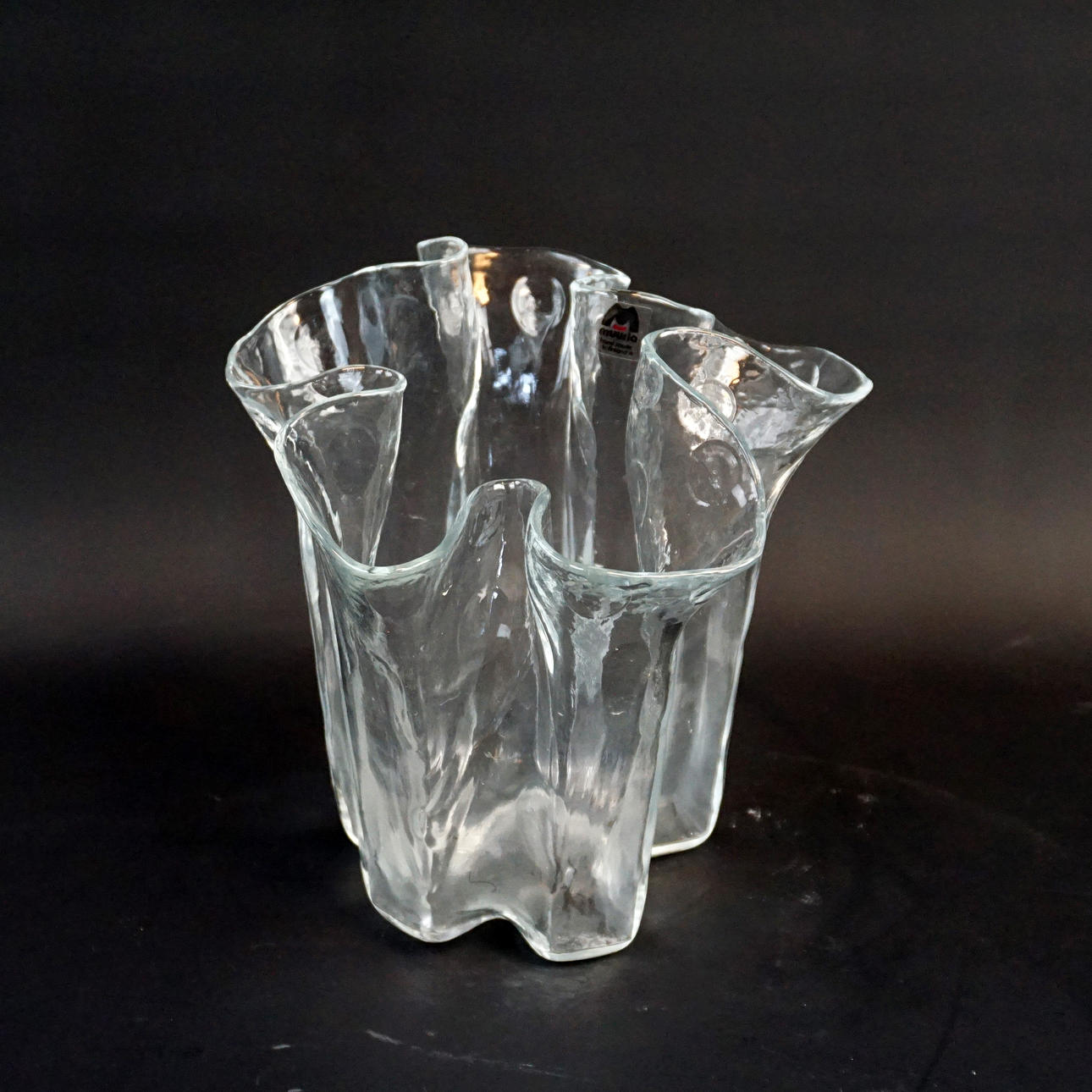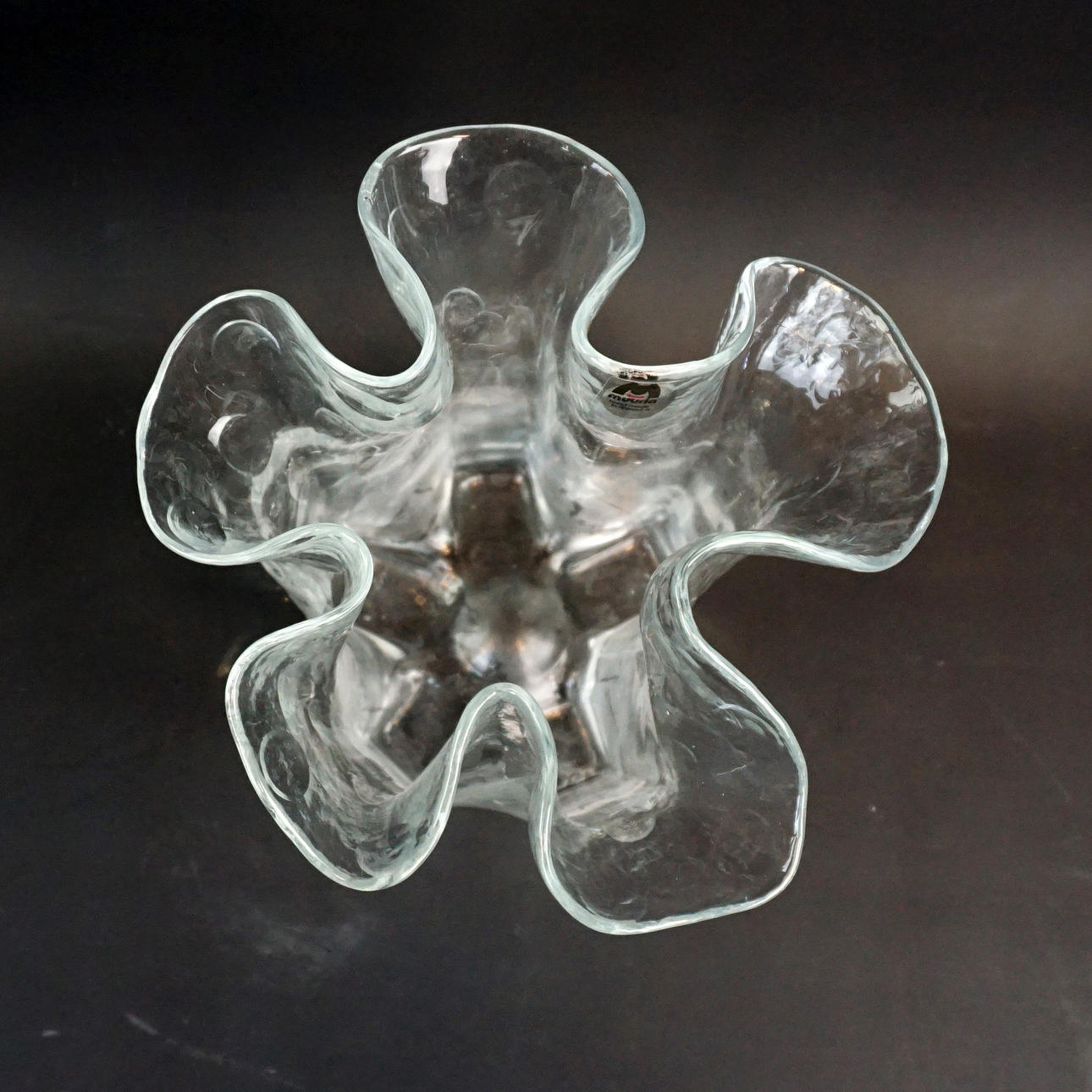 Vas med veckad kant, handgjord i Finland. Etikettmärkt.