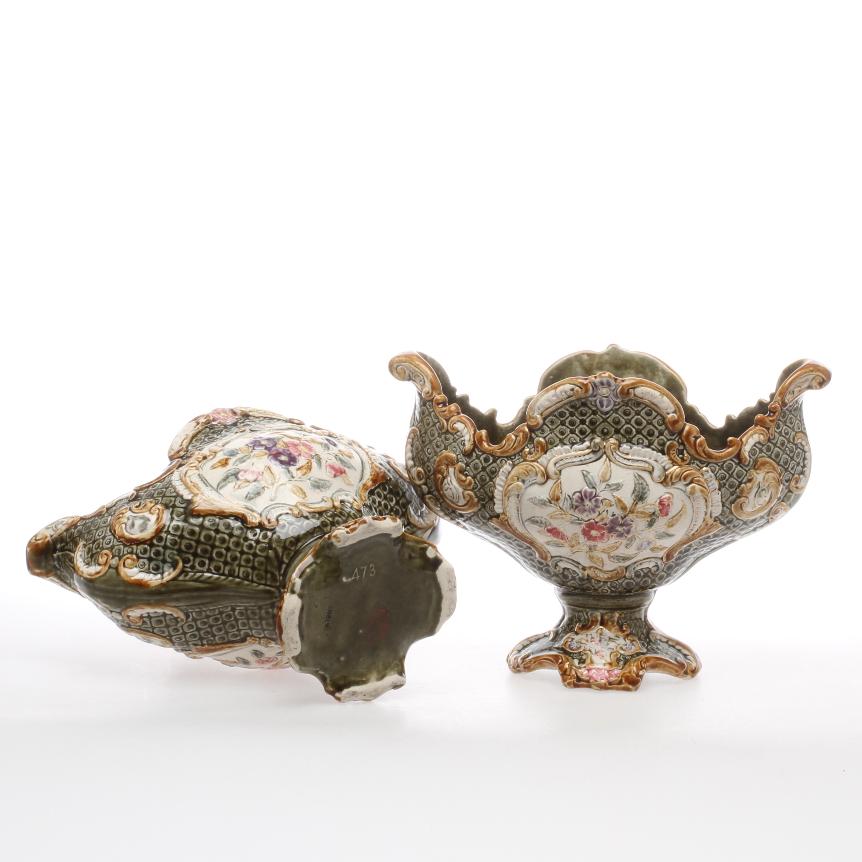 337604. YTTERFODER, 2 st, majolika, England.