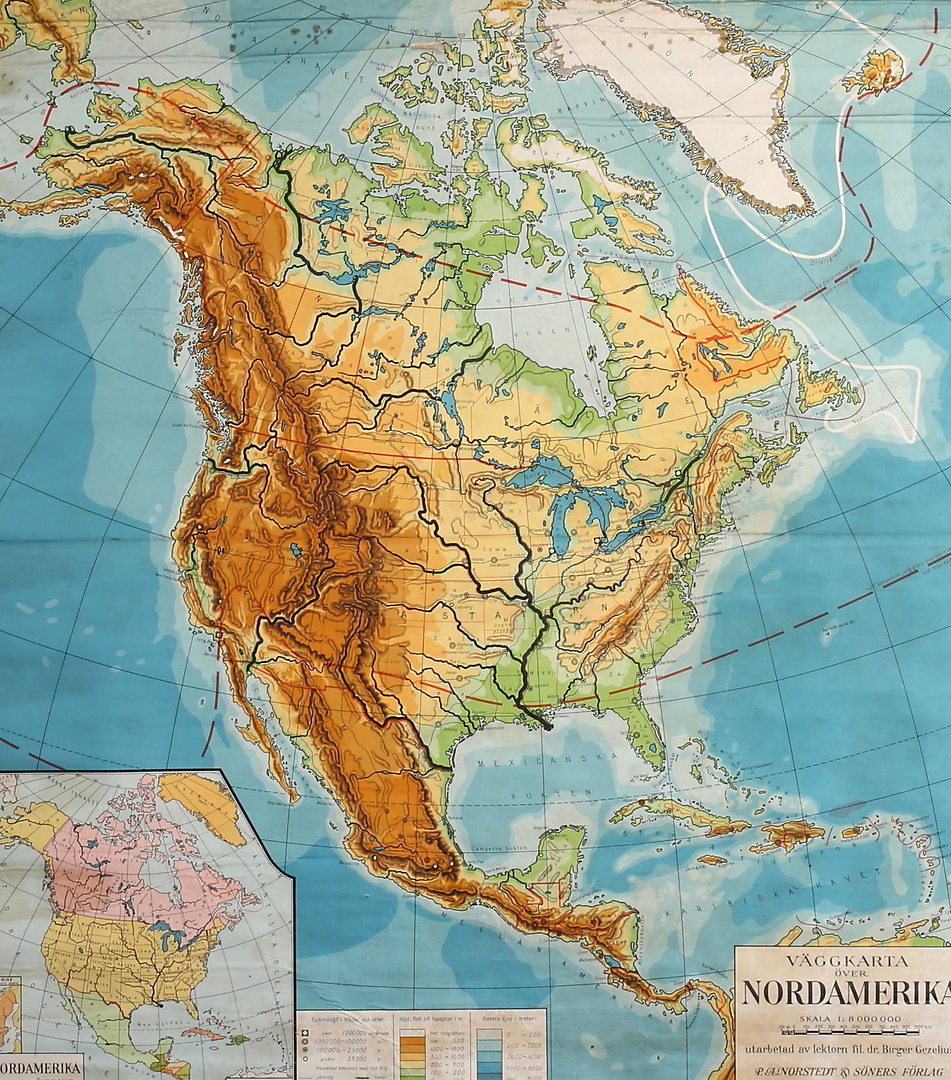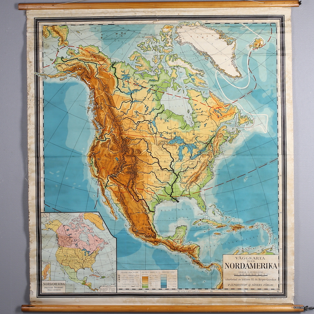 337749. VÄGGKARTA, nordamerika, 1932.