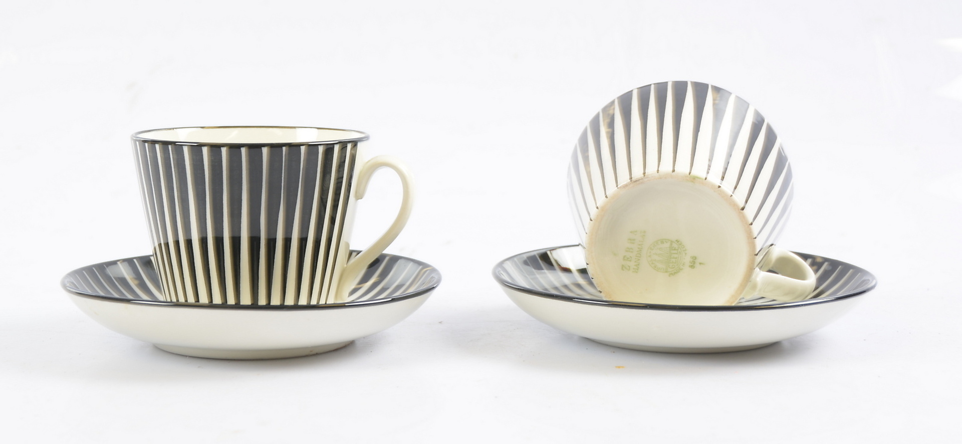 338044. TEKOPPAR, med fat, 2 st, porslin, "Zebra" Eugen Trost, Upsala-Ekeby.
