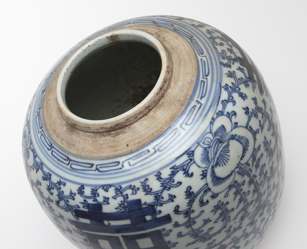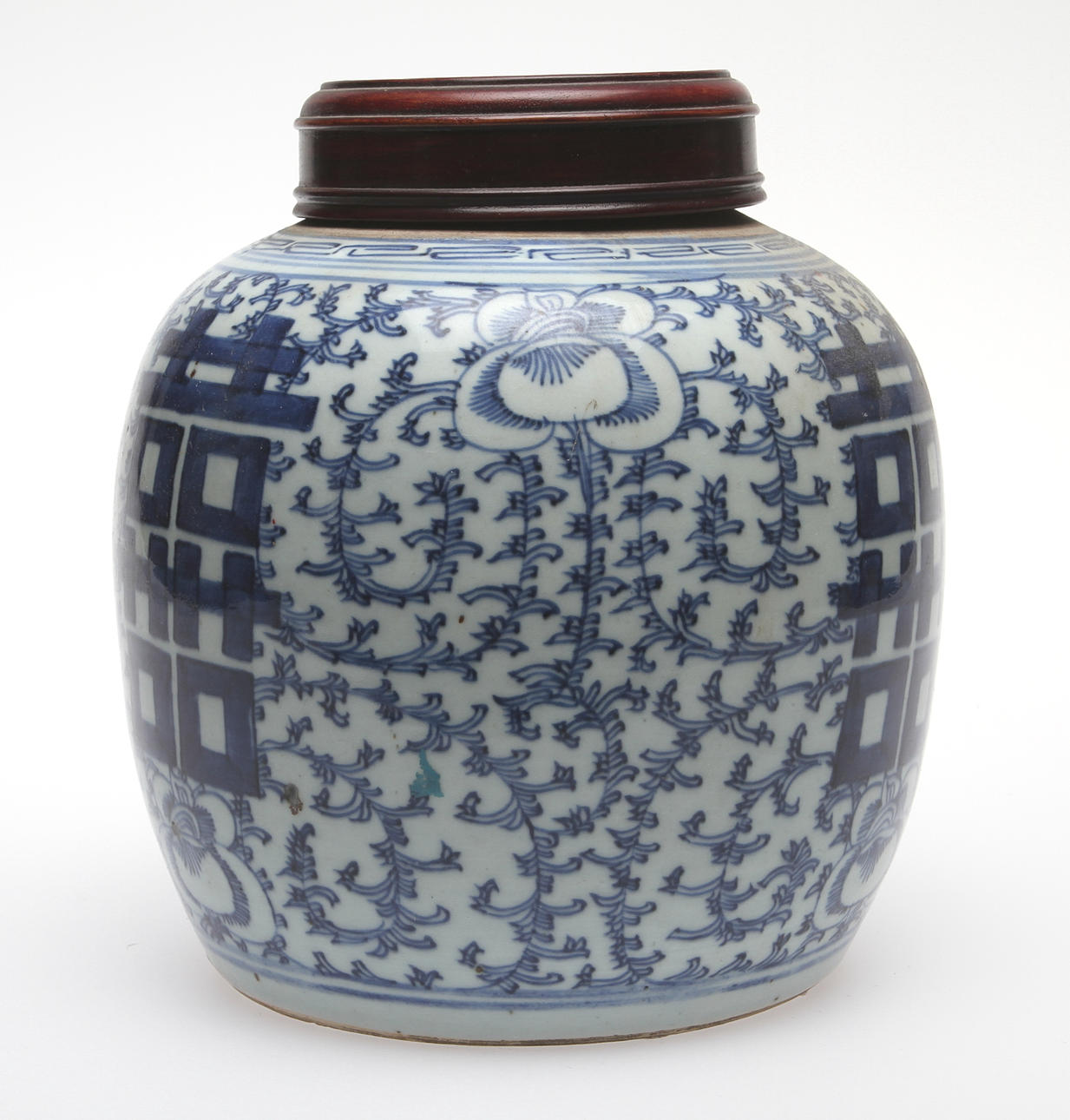 Dekor av blommor i underglasyrblått. Höjd 22 cm.