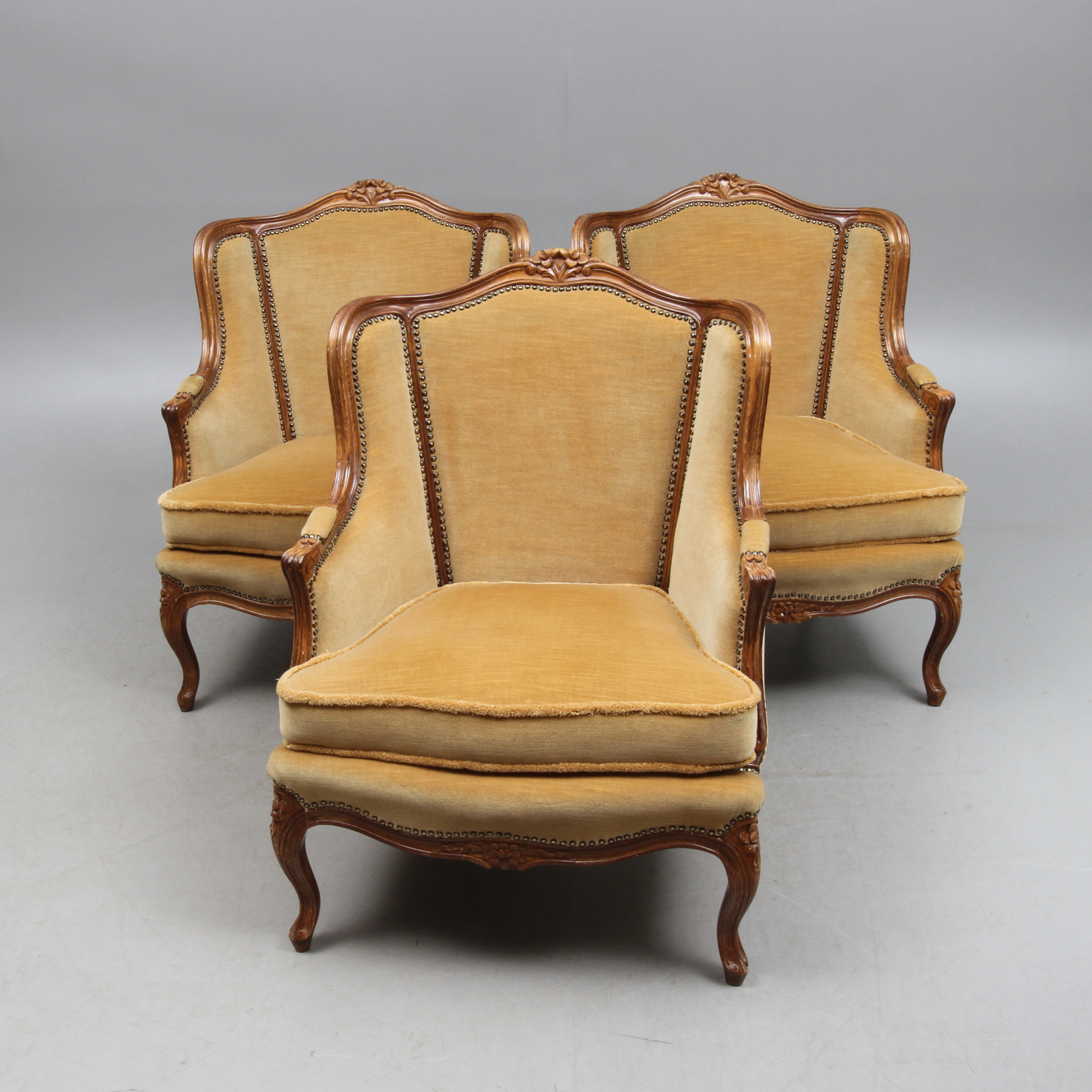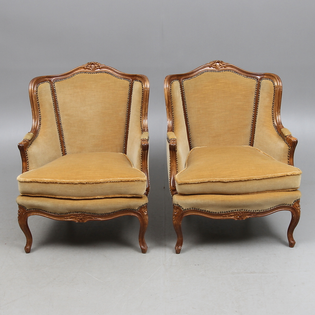 338401. FÅTÖLJER, 3 st, rokokostil, 1900-tal.