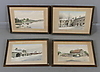 338530. FRANS LINDSTRÖM. 4 st, akvarell, signerade.