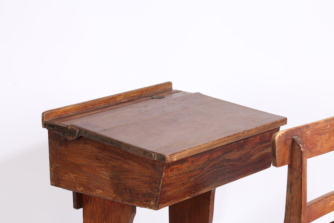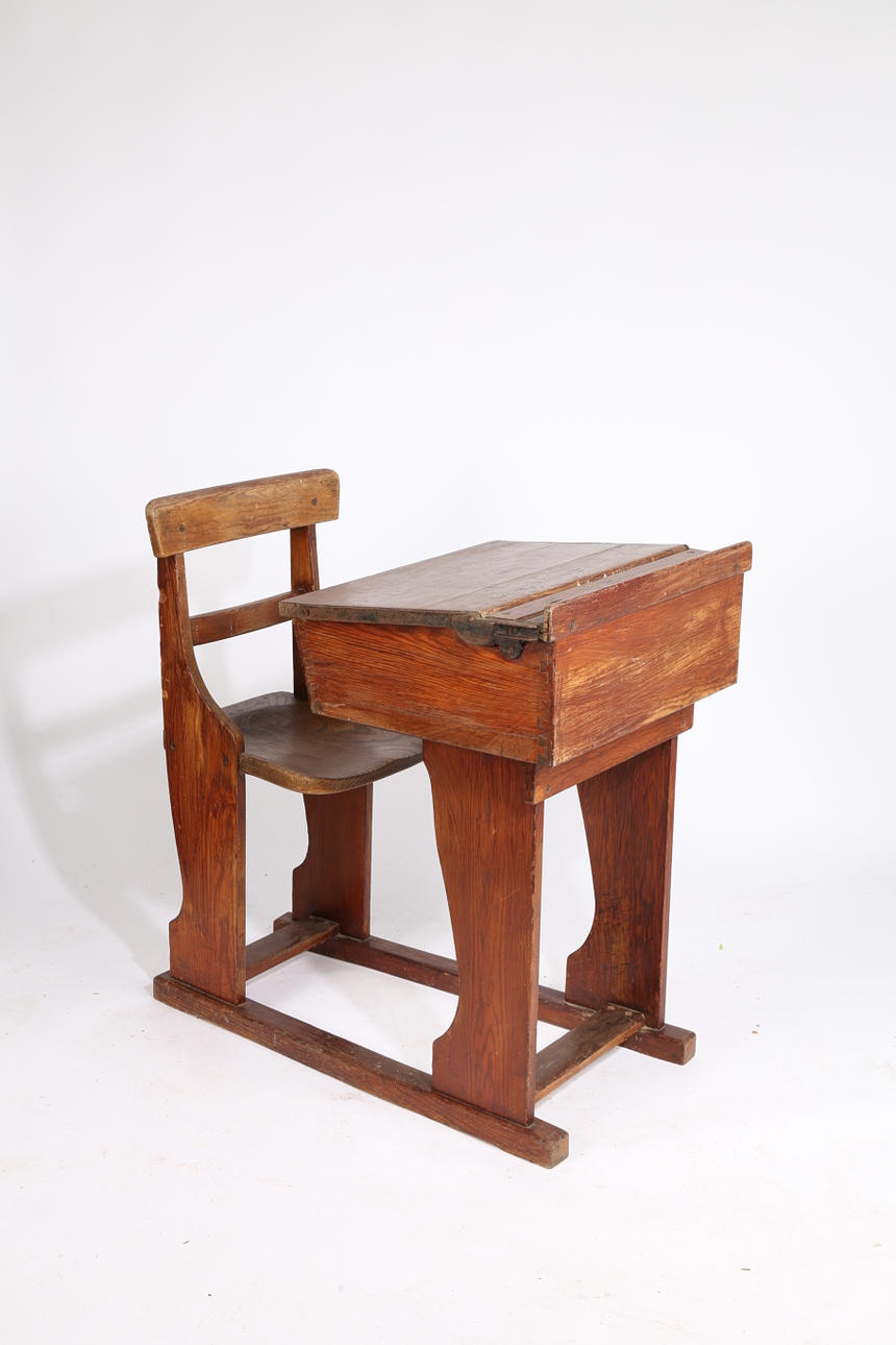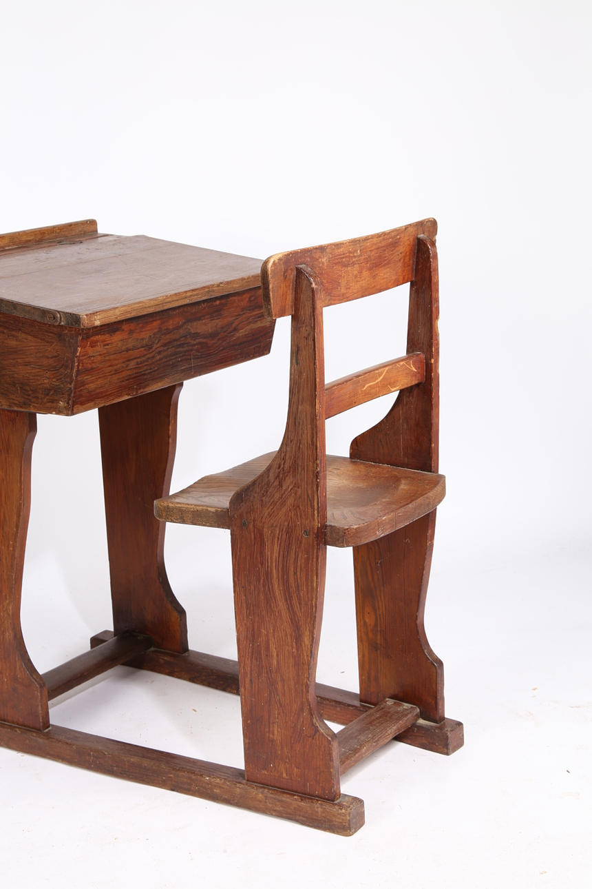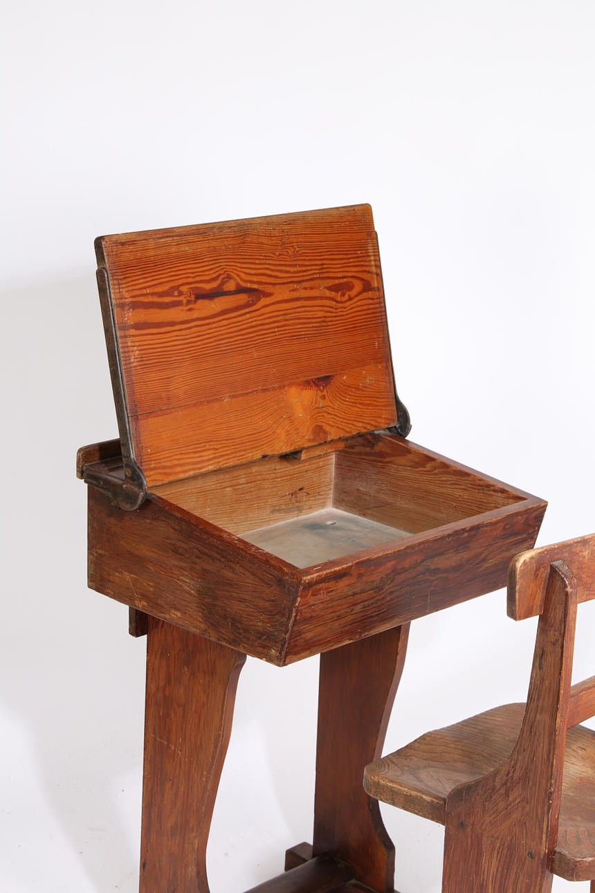 Med alm sittande stol och gångjärnsbord, 82cm bred, ca 80cm hög.