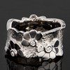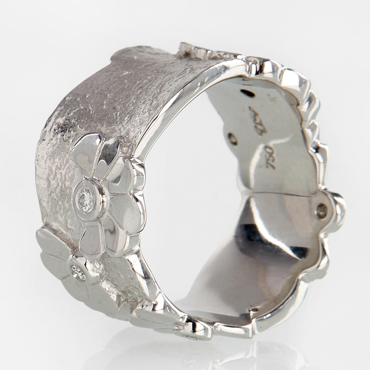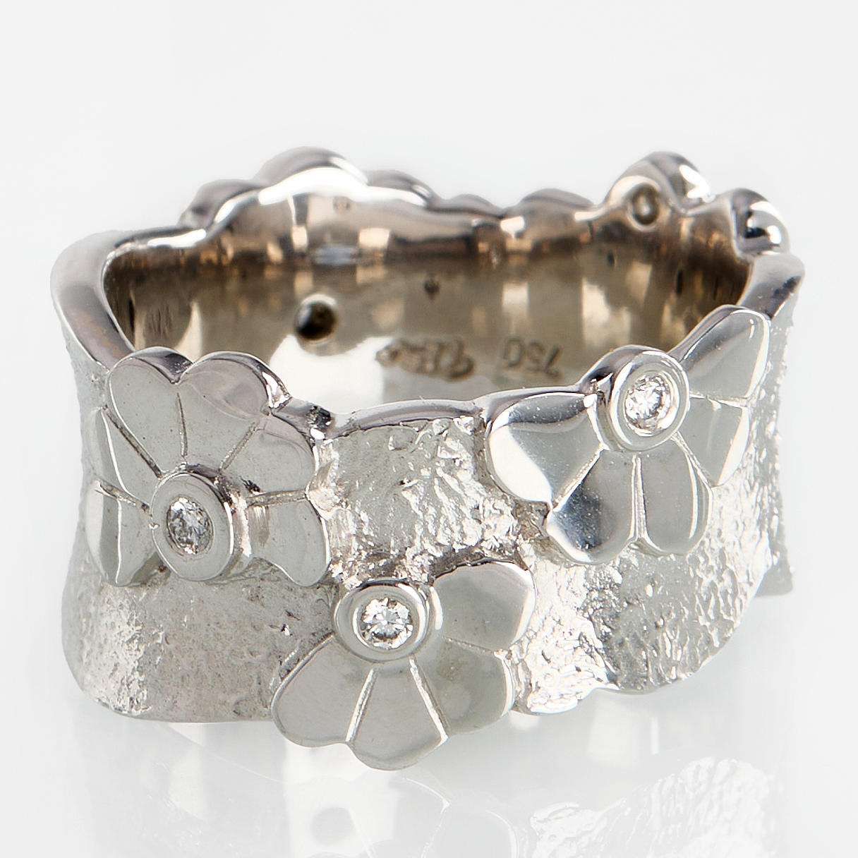 Per Borup ring 18k. Blomstermotiv med 6st briljantslipade diamanter. Storlek ca 17.5mm. Vikt ca 14.4g.