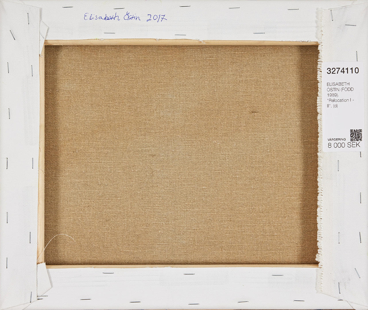 Elisabeth Östin, född 1989, bor och arbetar i Arrie. Hon har en masterexamen från Konsthögskolan i Malmö 2019 och har även studerat vid Slade School of Fine Art i London.
