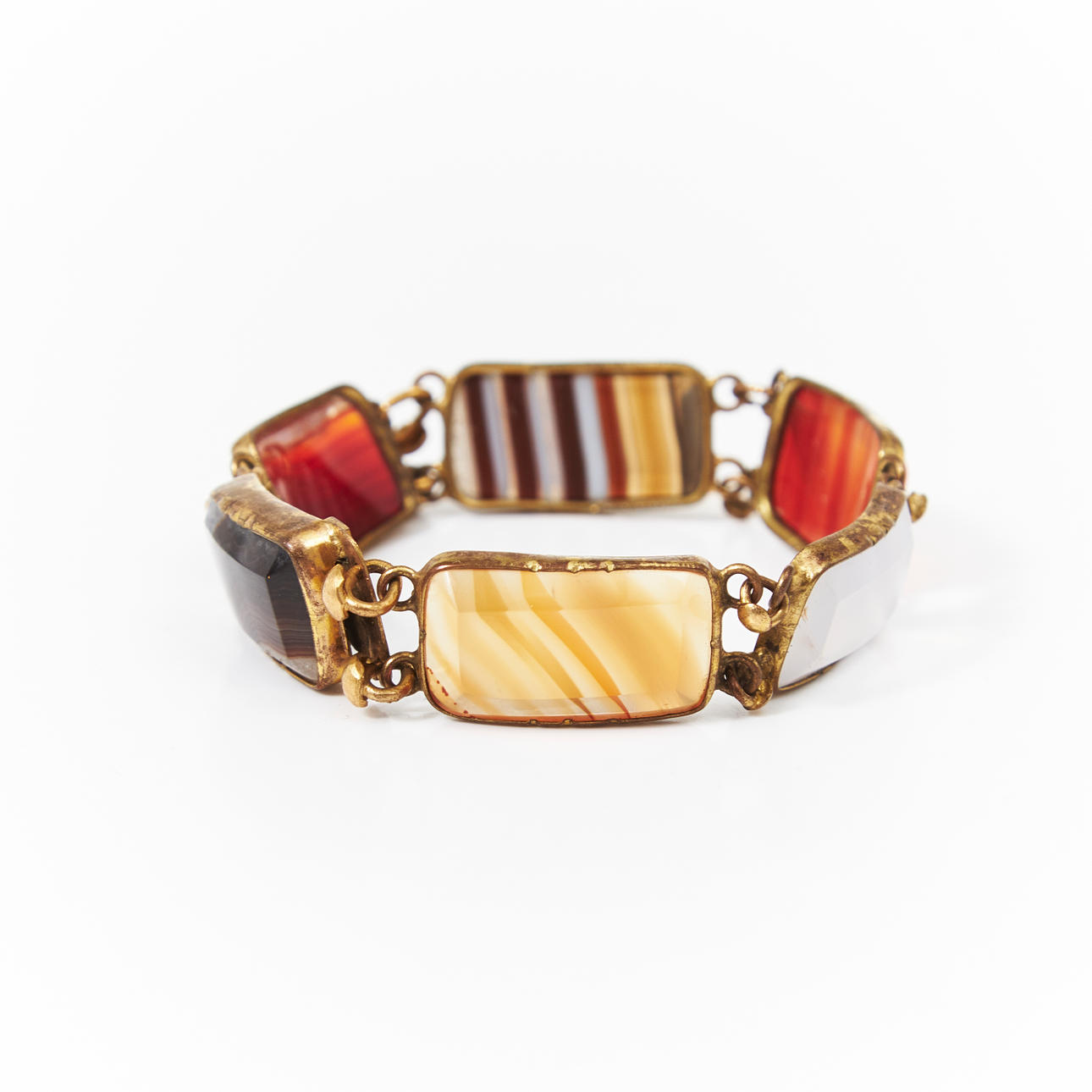 Armband, oädel metall med infattade agatplattor.