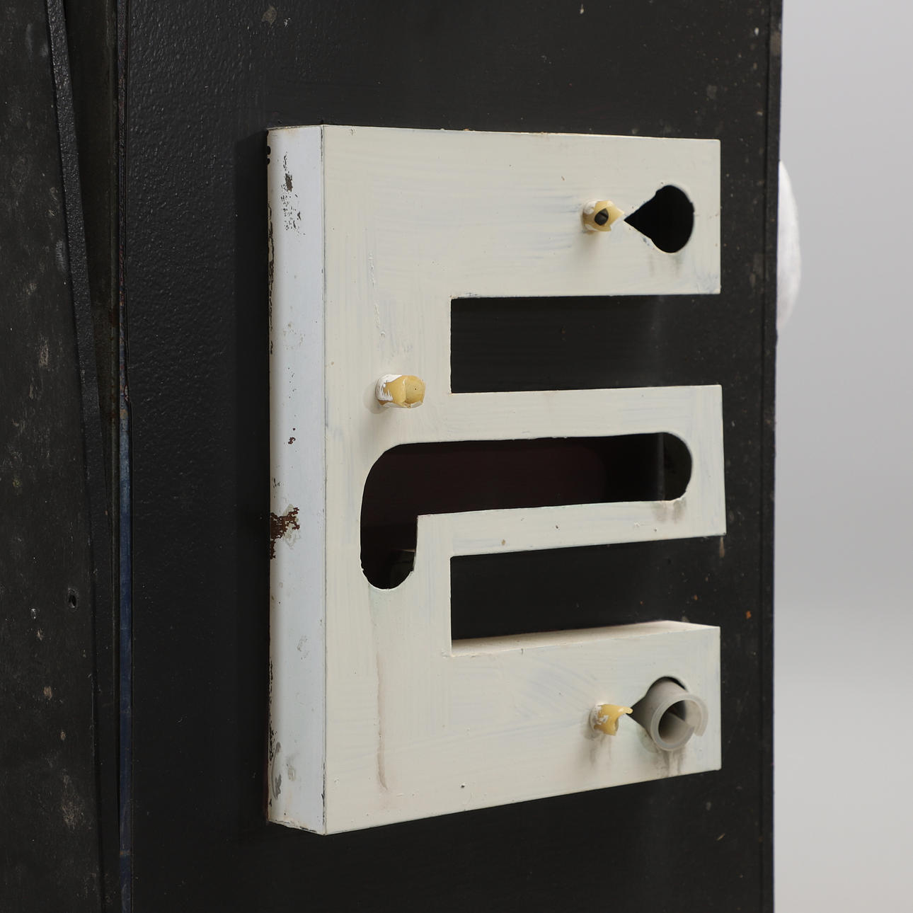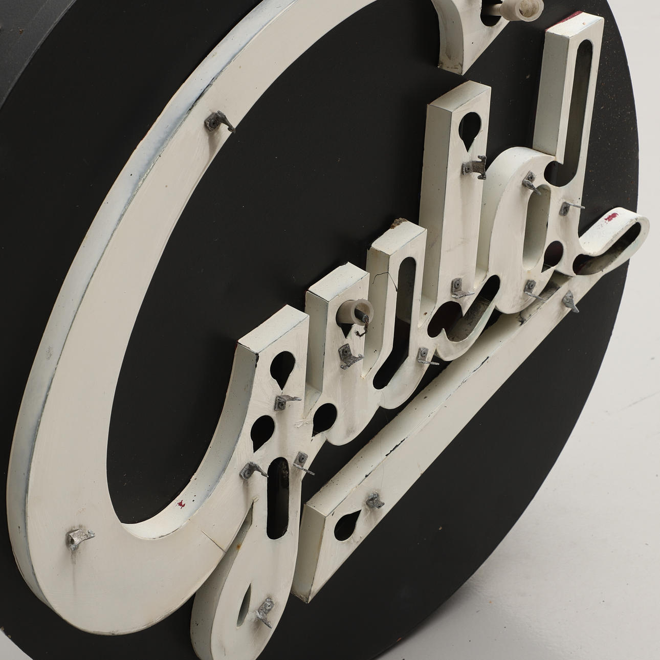 Bemålad plåt med lösa neonslingor. Proveniens: Juvelerare Sundelius i Lund.