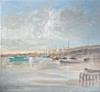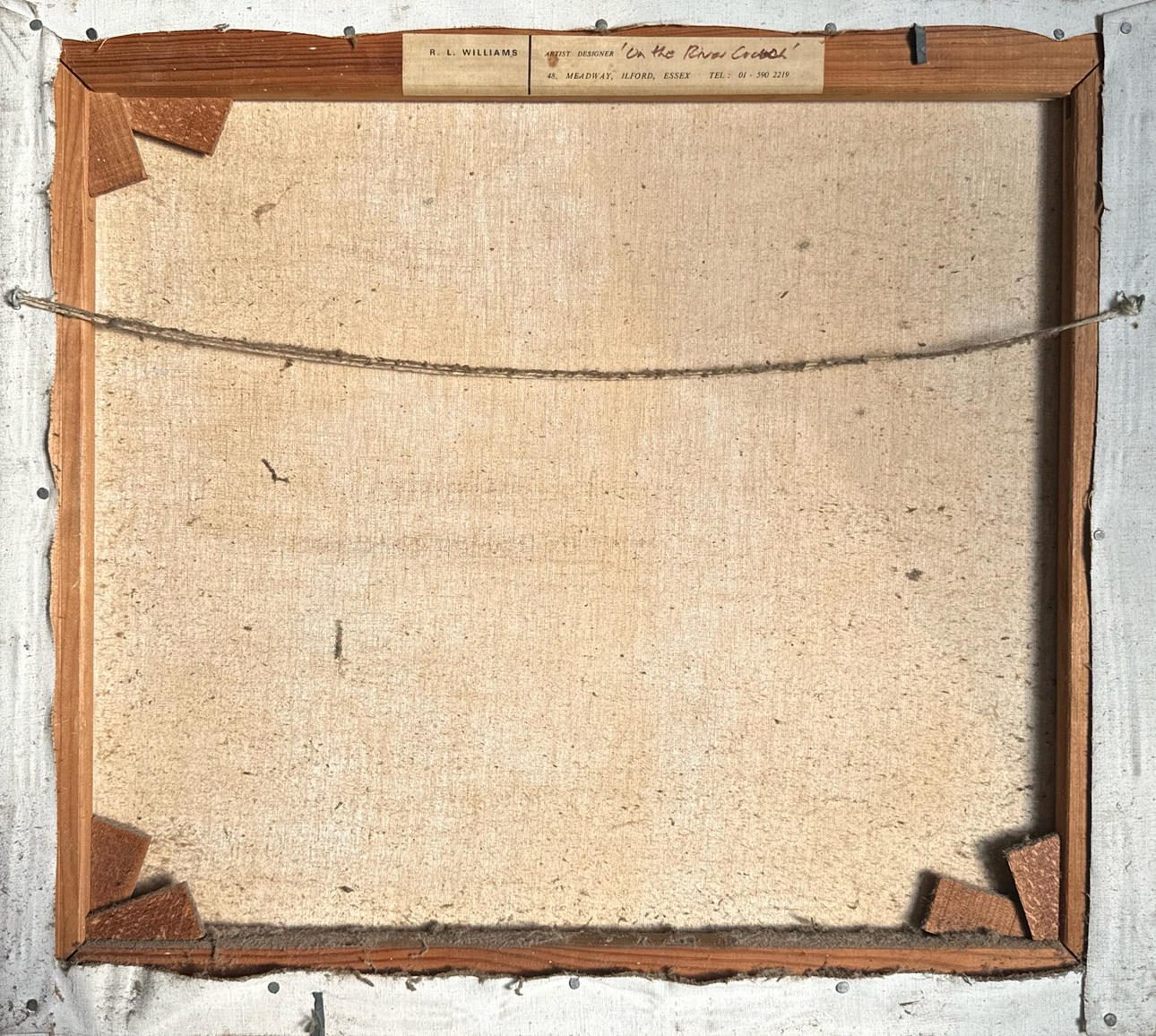 Oinramad olja på duk med titeln ”On The River Crouch” av R. L. Williams, 51 x 45,5 cm.