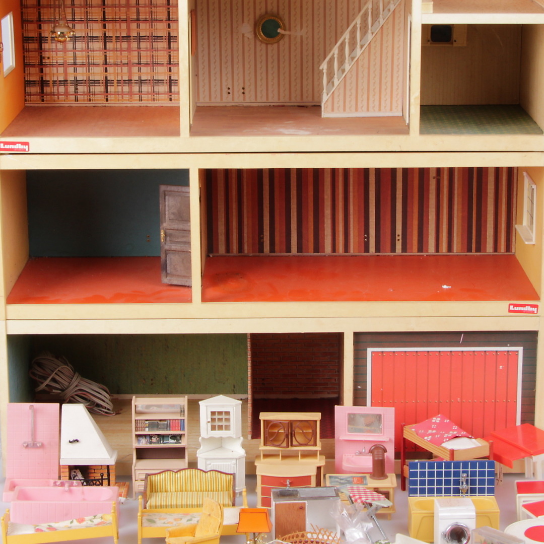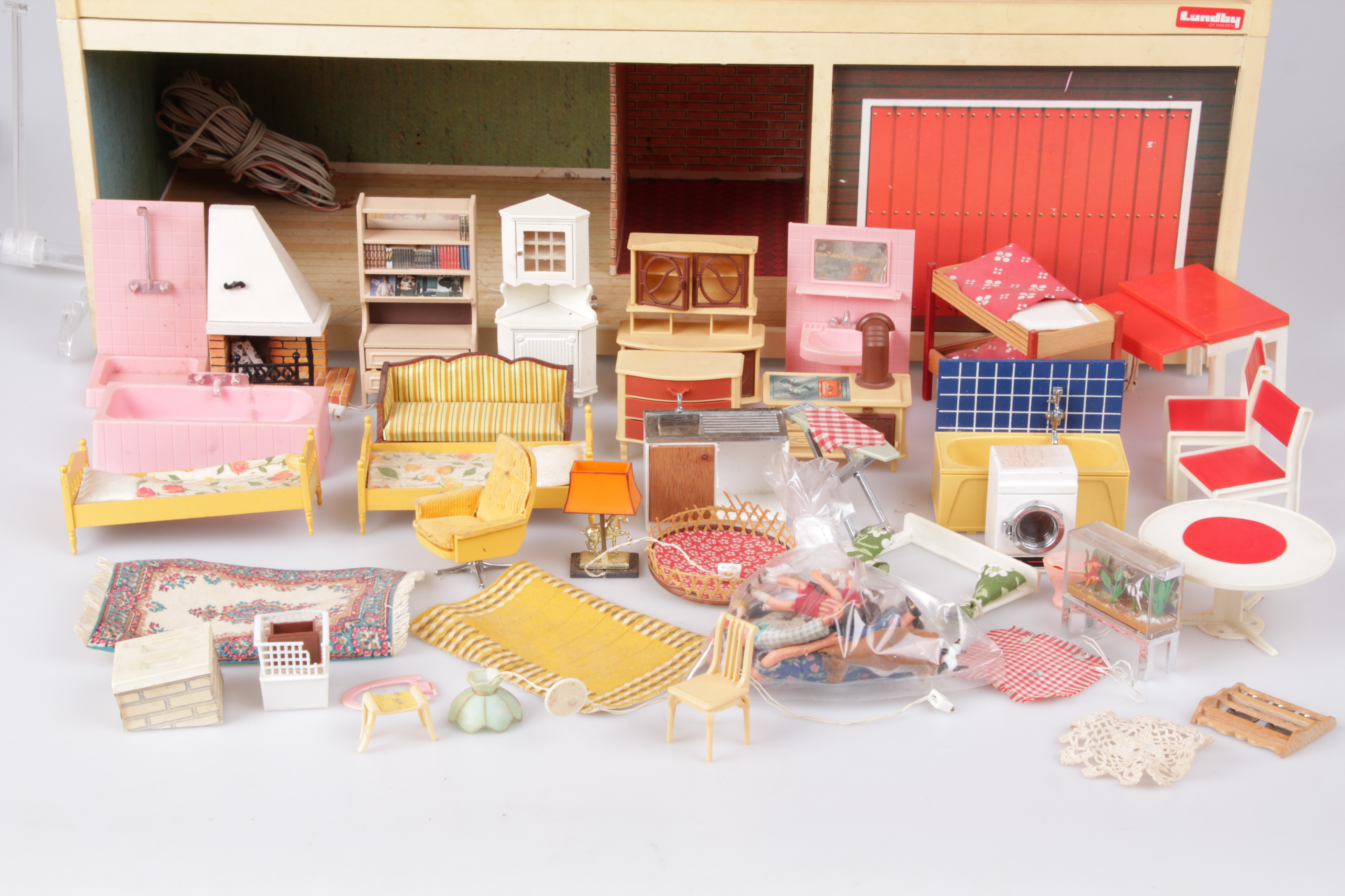 339134. DOCKHUS, samt dockmöbler och dockor, Lundby, 1900-tal.