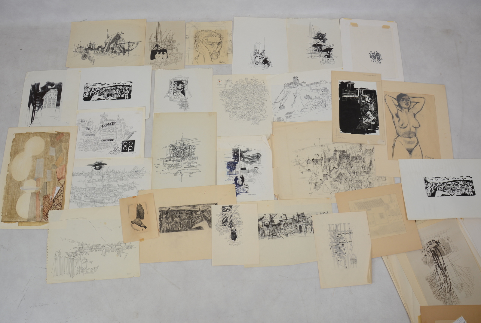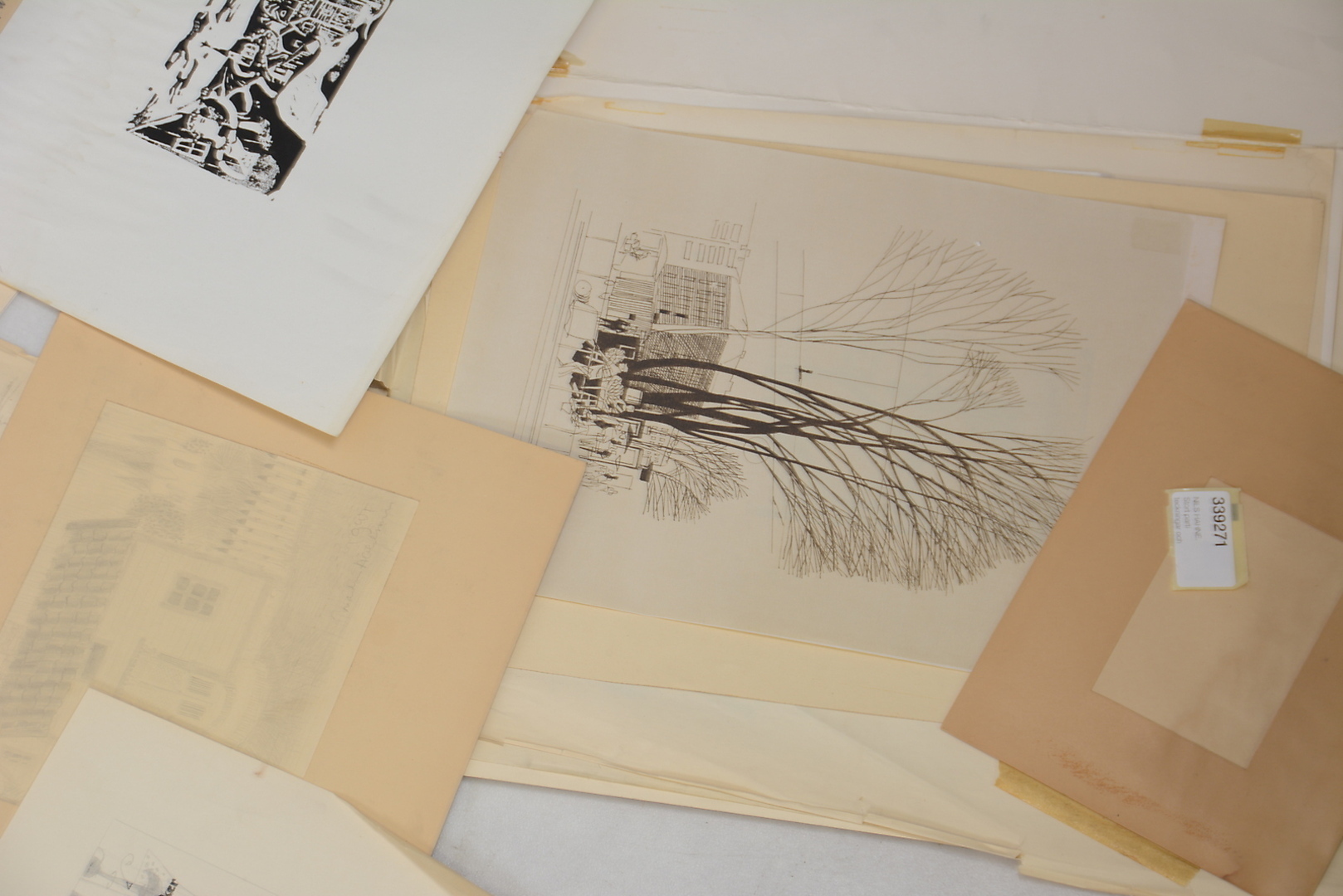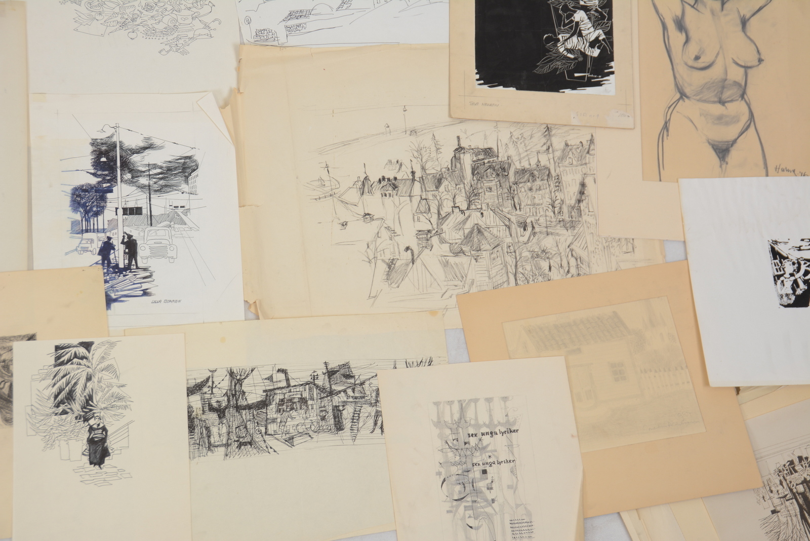 339271. NILS HAHNE. Stort parti teckningar och grafik.