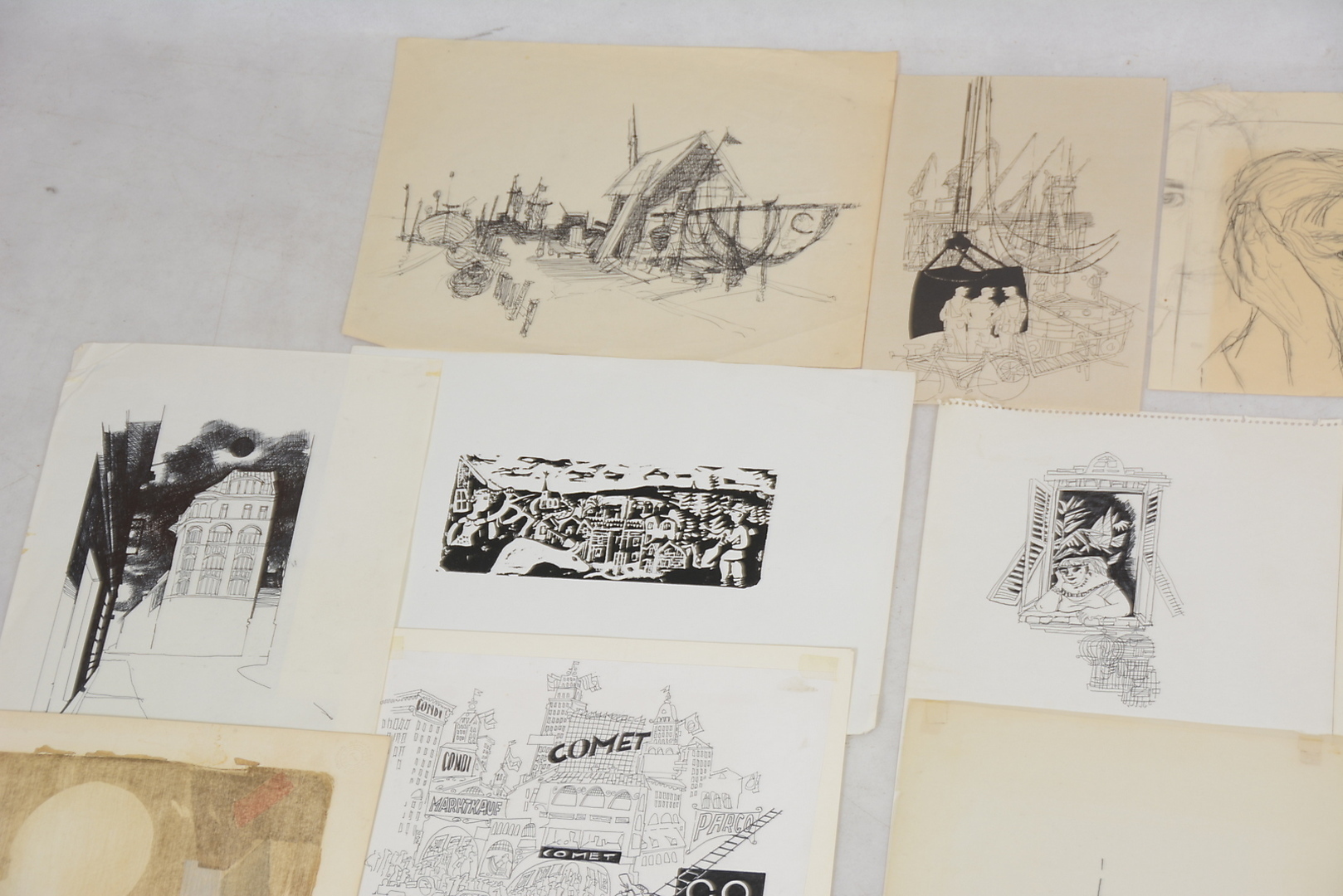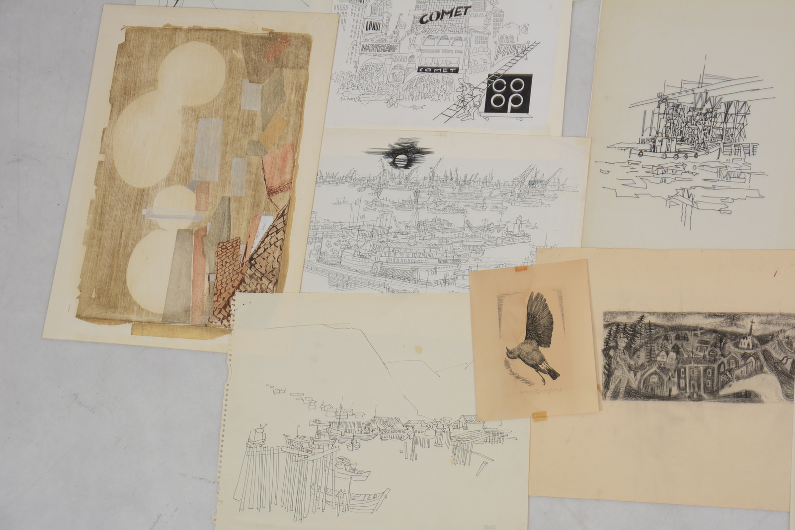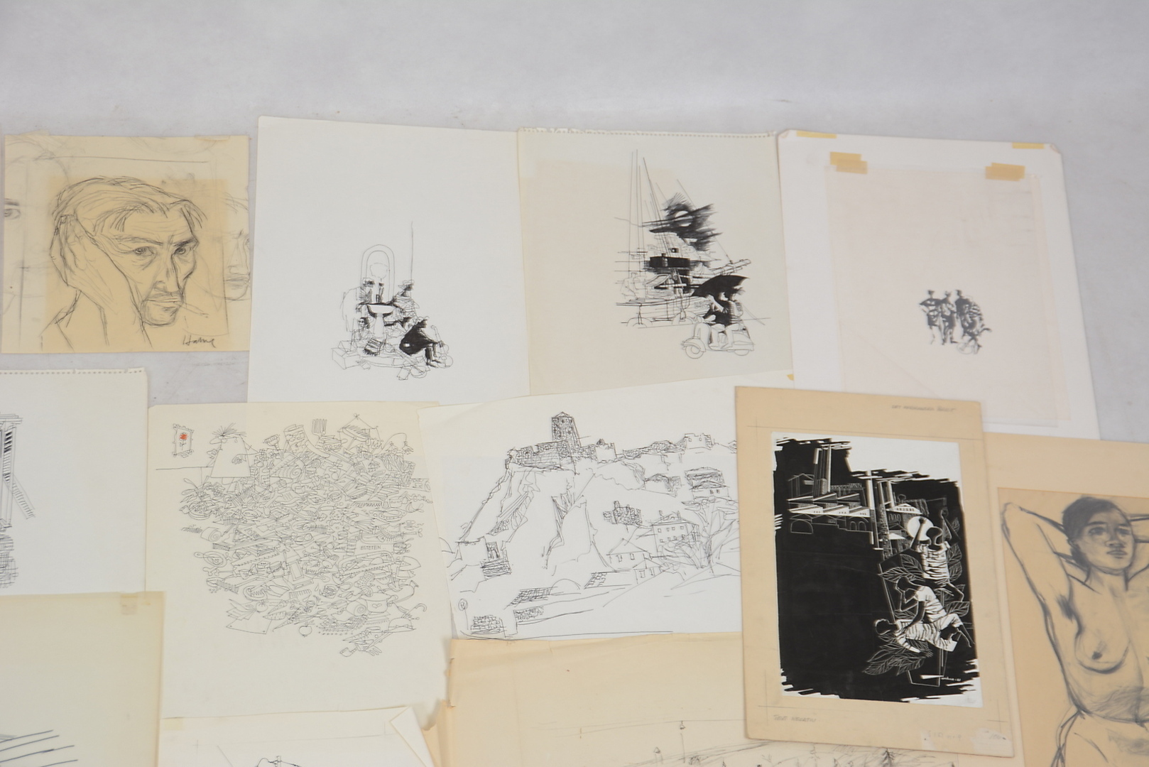 339271. NILS HAHNE. Stort parti teckningar och grafik.