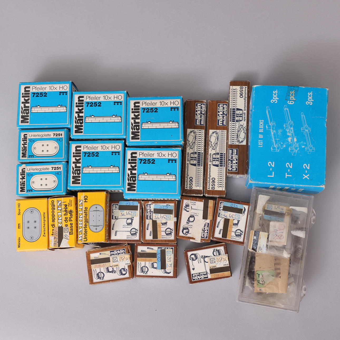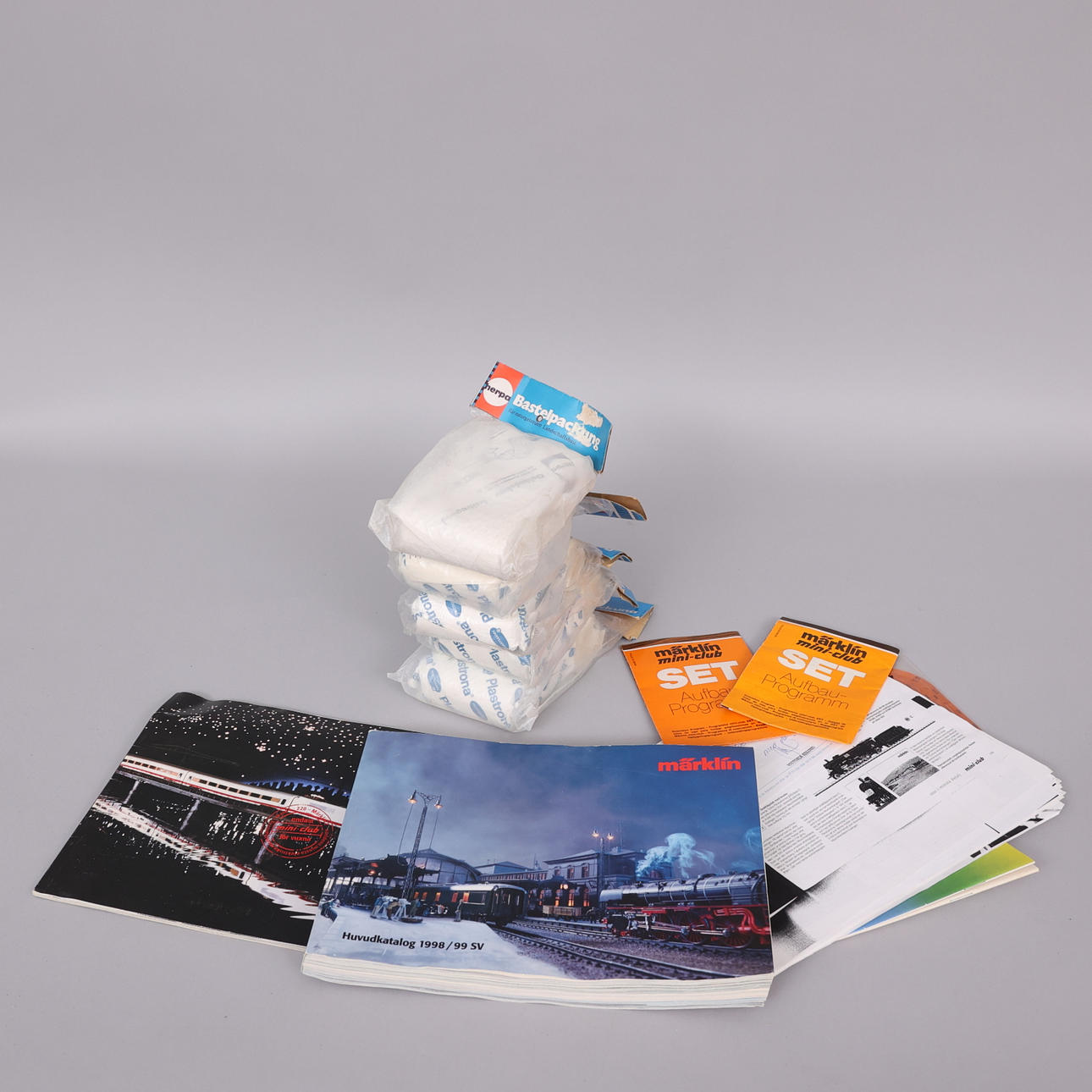 Parti tillbehör, terräng- och miljöelement samt kablage medföljer tillsammans med viss dokumentation och katalogmaterial.