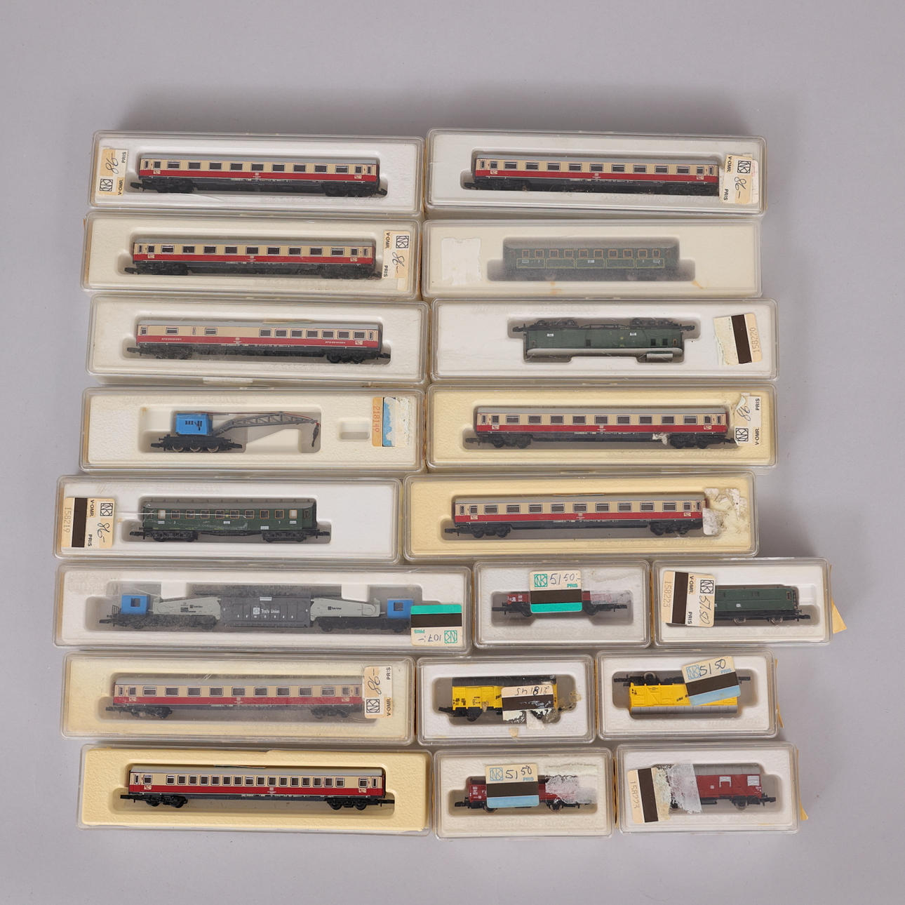 Större parti järnvägsdelar i skala Z bestående av: