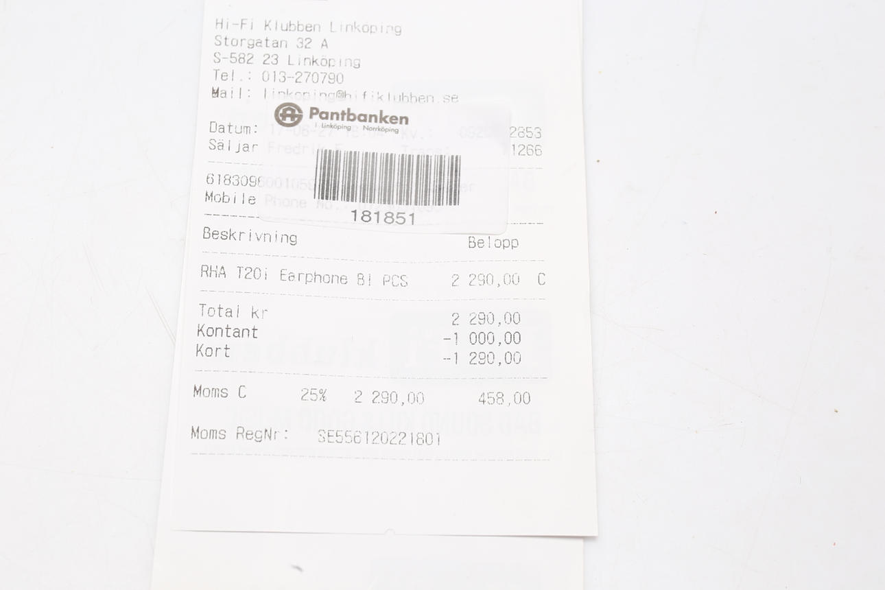 3393309. HÖRLURAR, RHA, T20i, Earphone.