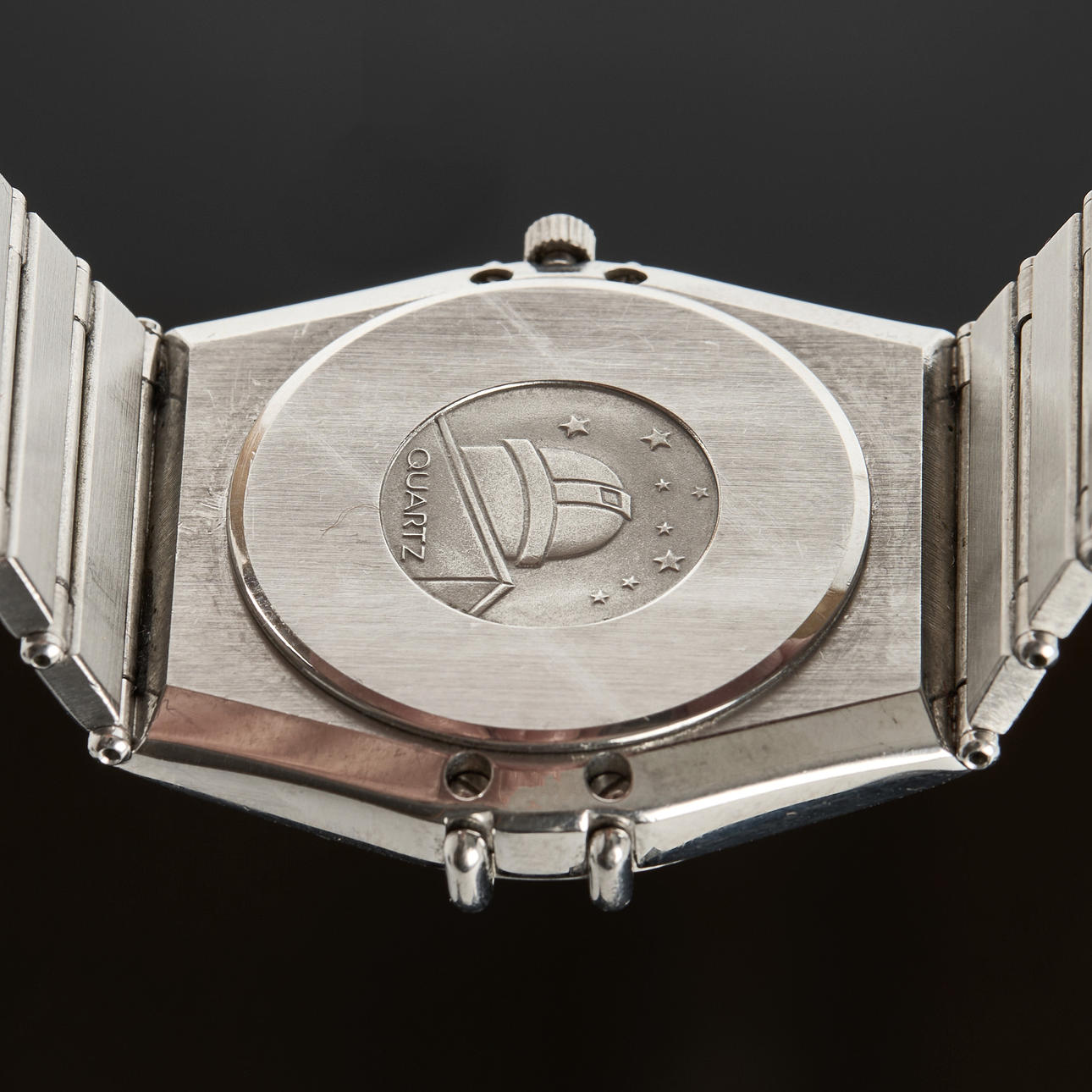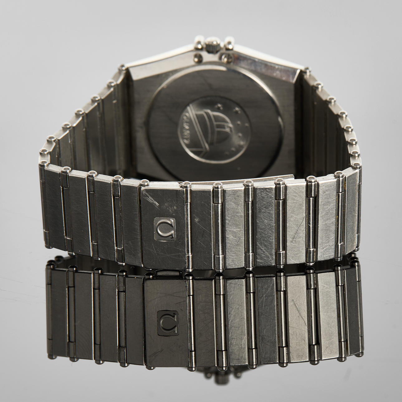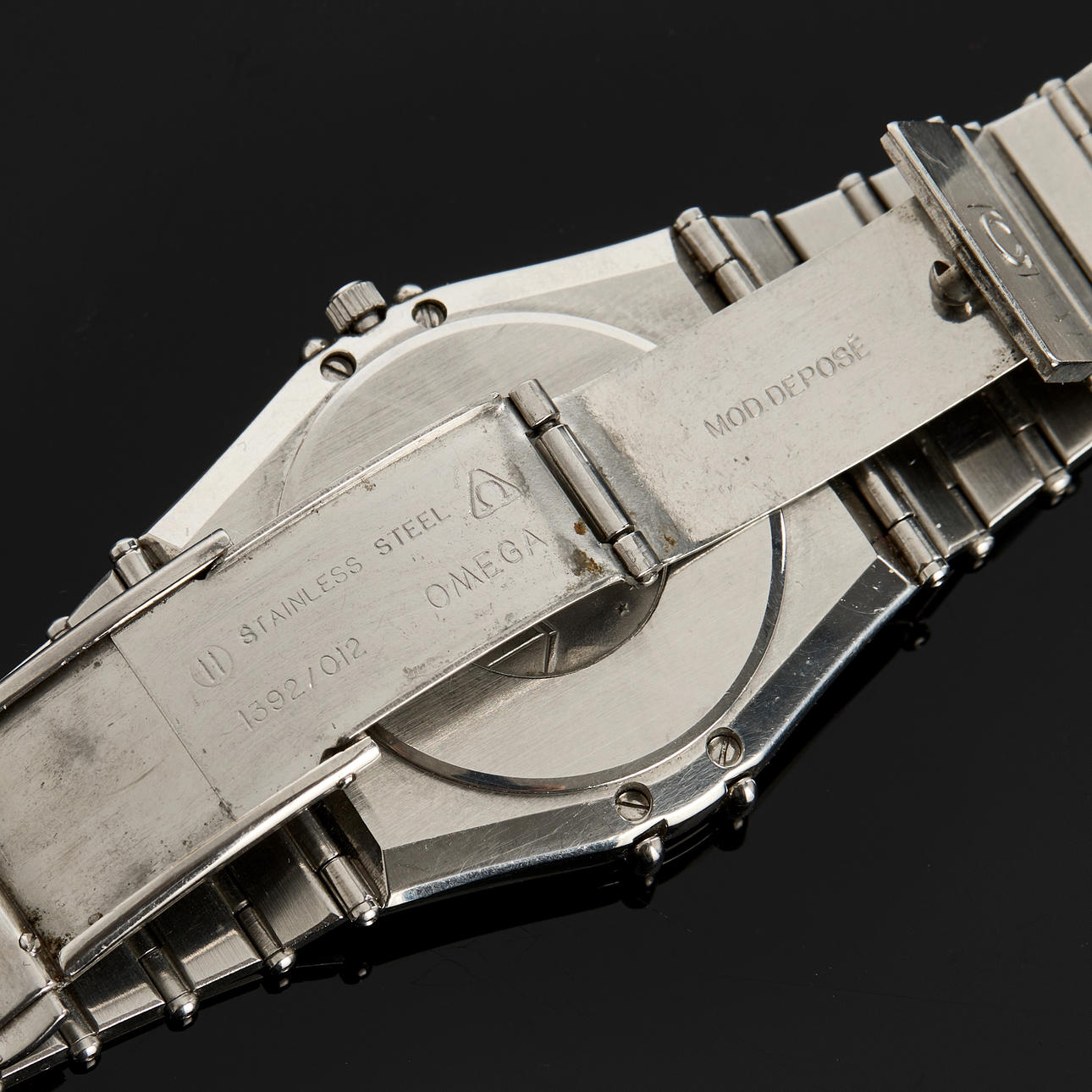 Ref nr. 396.1080, cal. 1441 , herrur 33mm, stål, quartz, dag, datum, safirglas, integrererad stållänk, dolt vilklås, service utförd 15-08-2022 (kvitto). 1990tal. Omegabox.