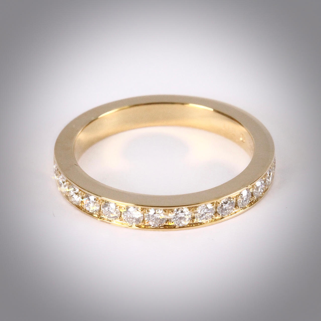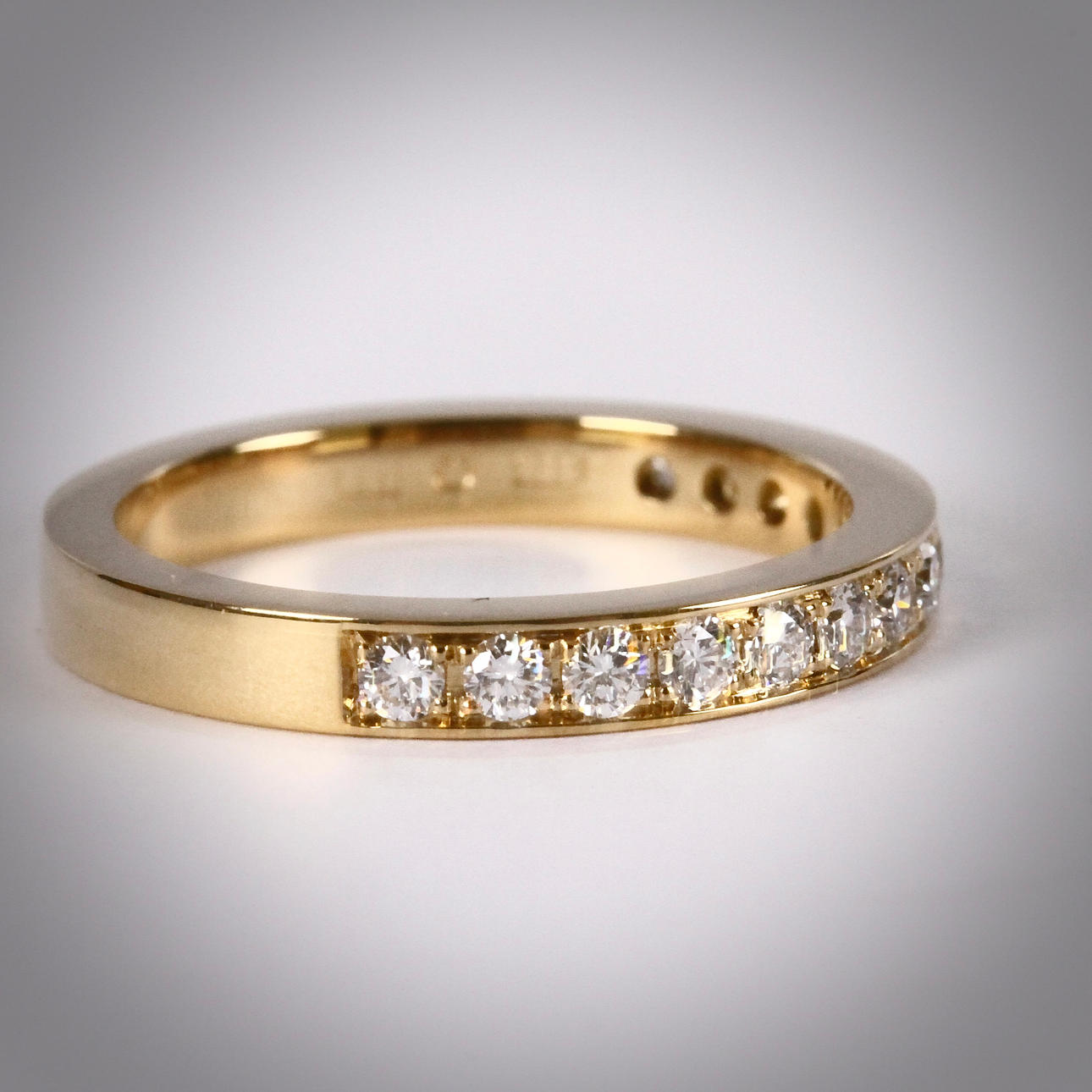 Besatt med 14 st briljantslipade diamanter på totalt 0,42ct, ca Top Wesselton-Wesselton/VVS-VS, storlek 53, vikt 4,4 gram.