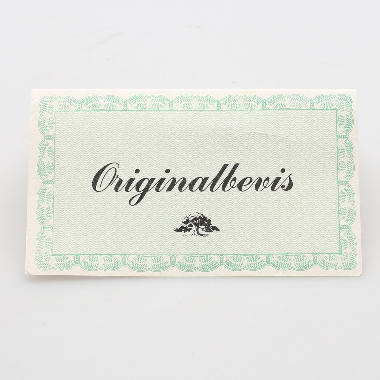Etikettmärkt Guldkroken, Hjo. Medföljande originalbevis.