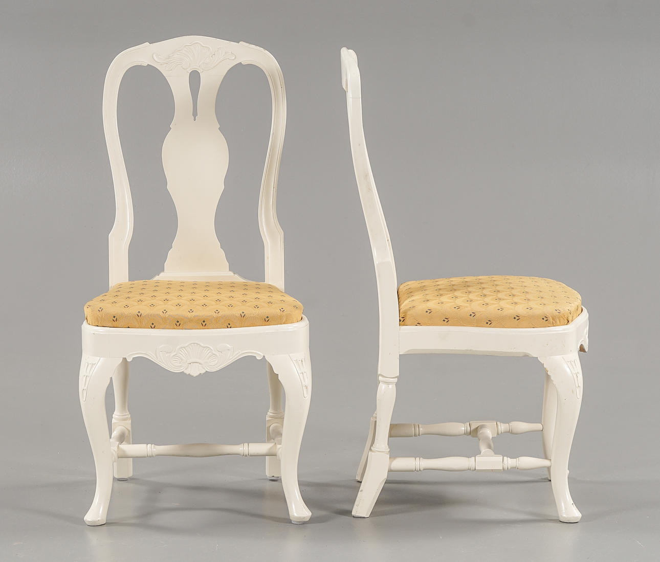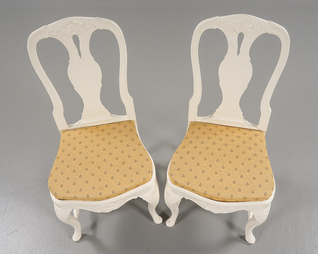 Stolar 8 st, skuren dekor med snäckor, 1900-talets mitt.