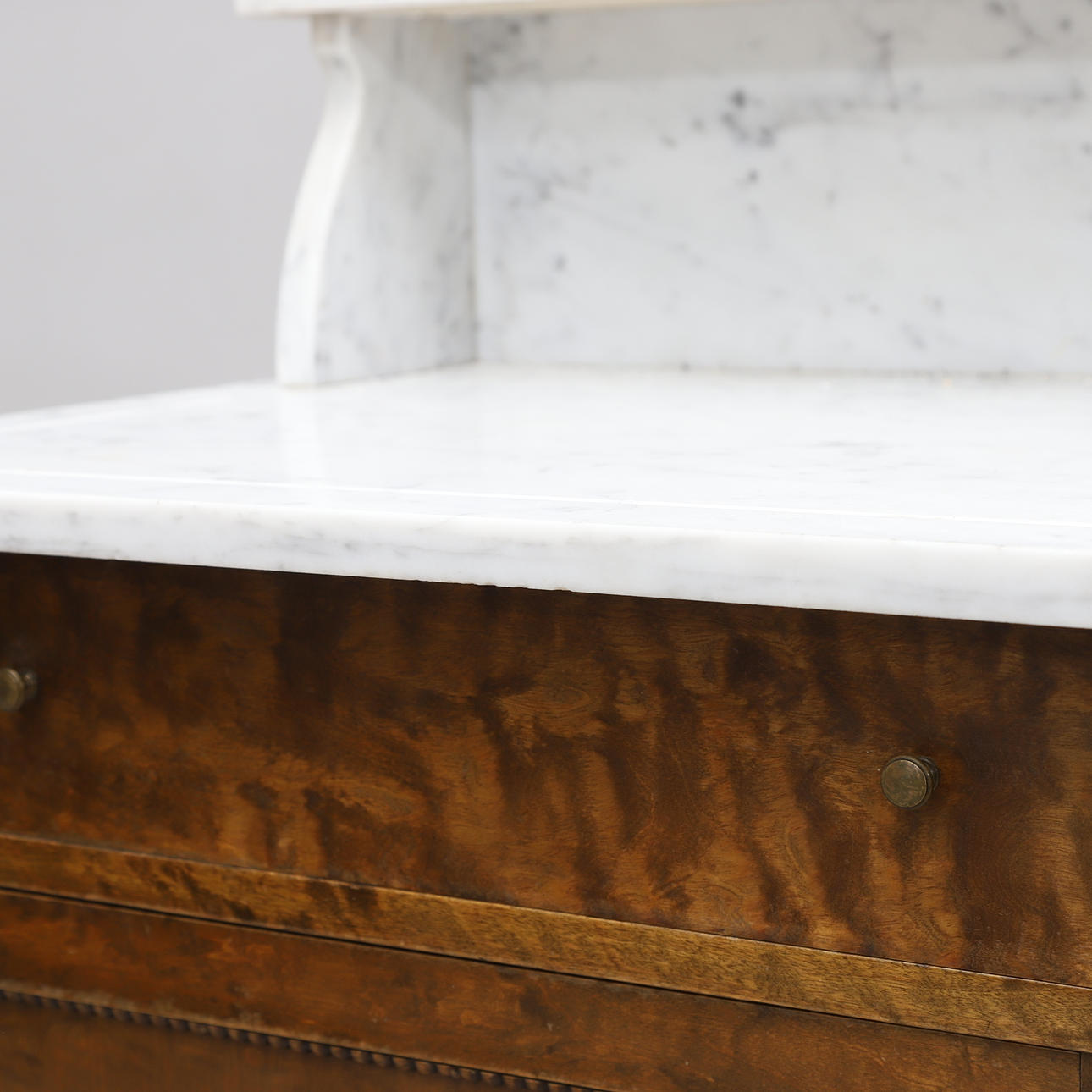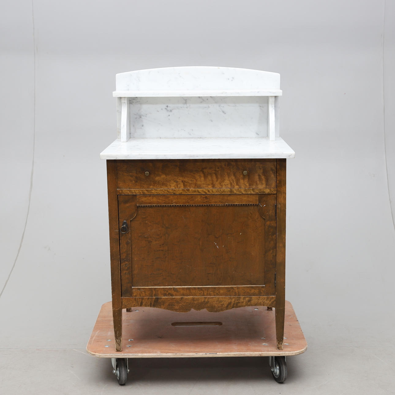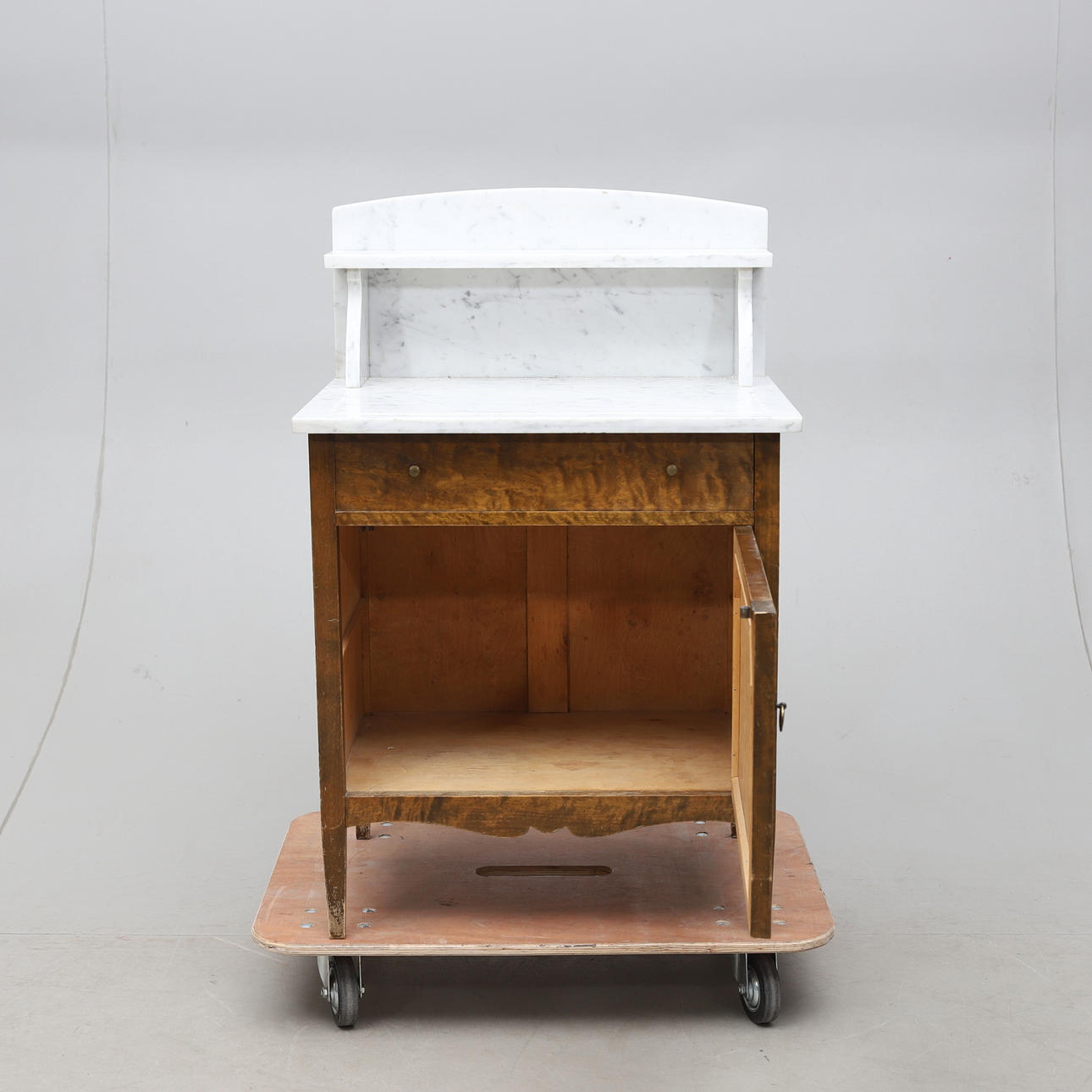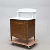 Underrede fanerat med björk. En dörr samt en låda. Överdel med uppsats i marmor. Längd ca 65, bredd 51, höjd 100 cm.