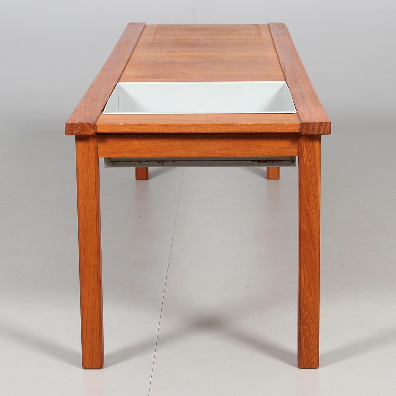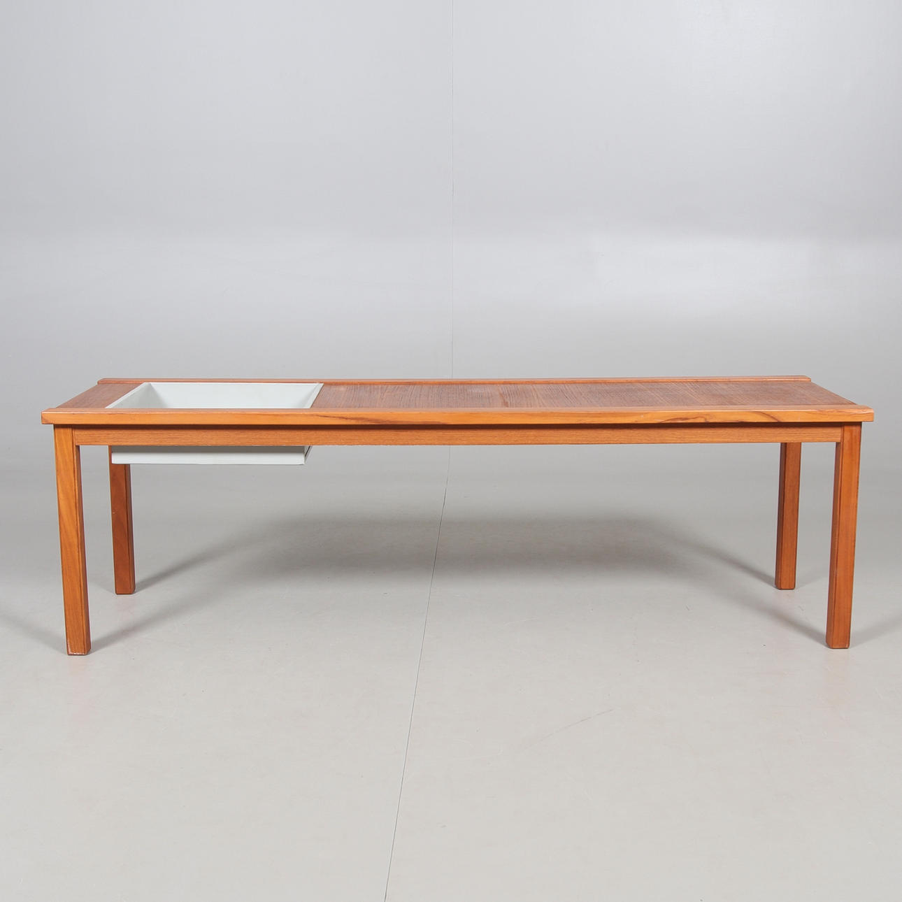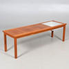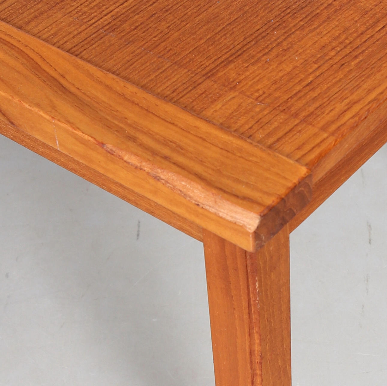 Bruksslitage, repor, märken. Avslag vid ett hörn på bordsskiva.