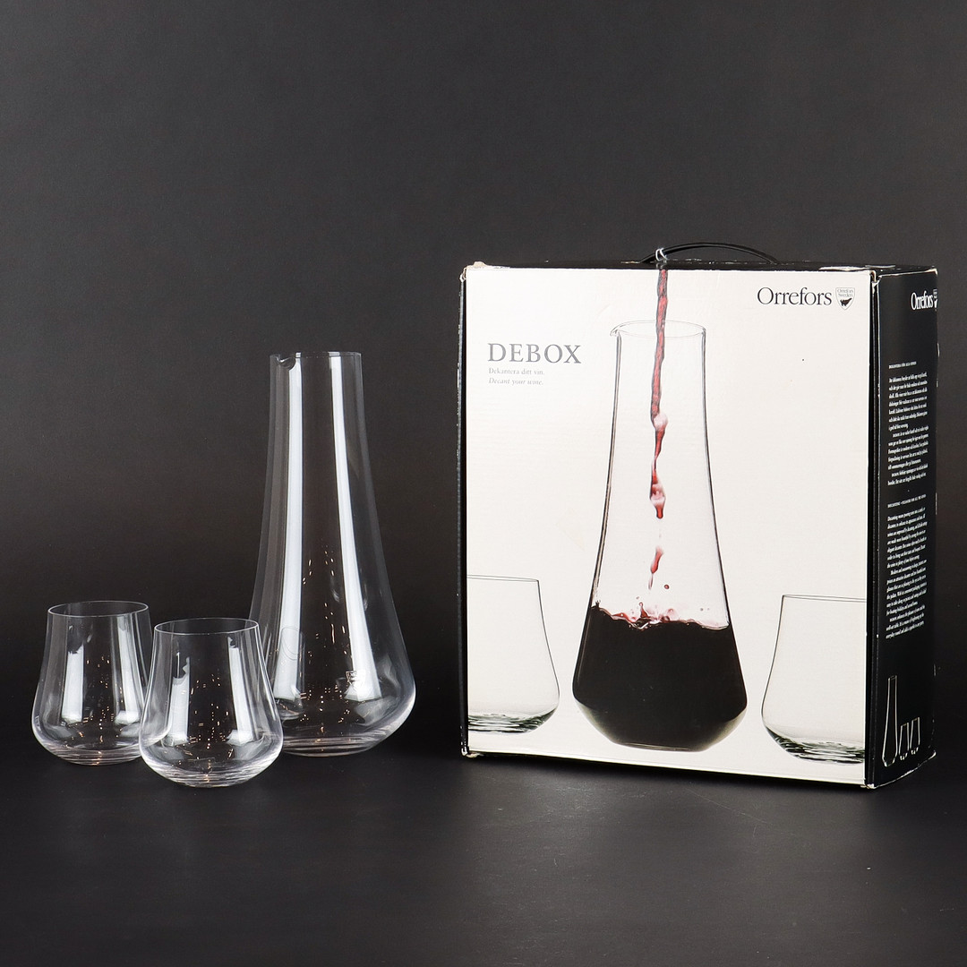 3401050. KARAFF OCH 2 GLAS Orrefors, design Lena Bergström.
