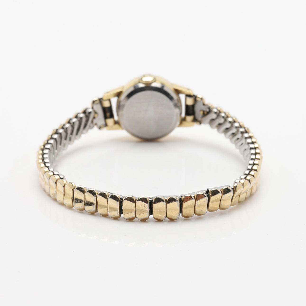 Dammodell. Manuell. Ljus urtavla med stavindex. Diameter ca 17 mm. Flexarmband.