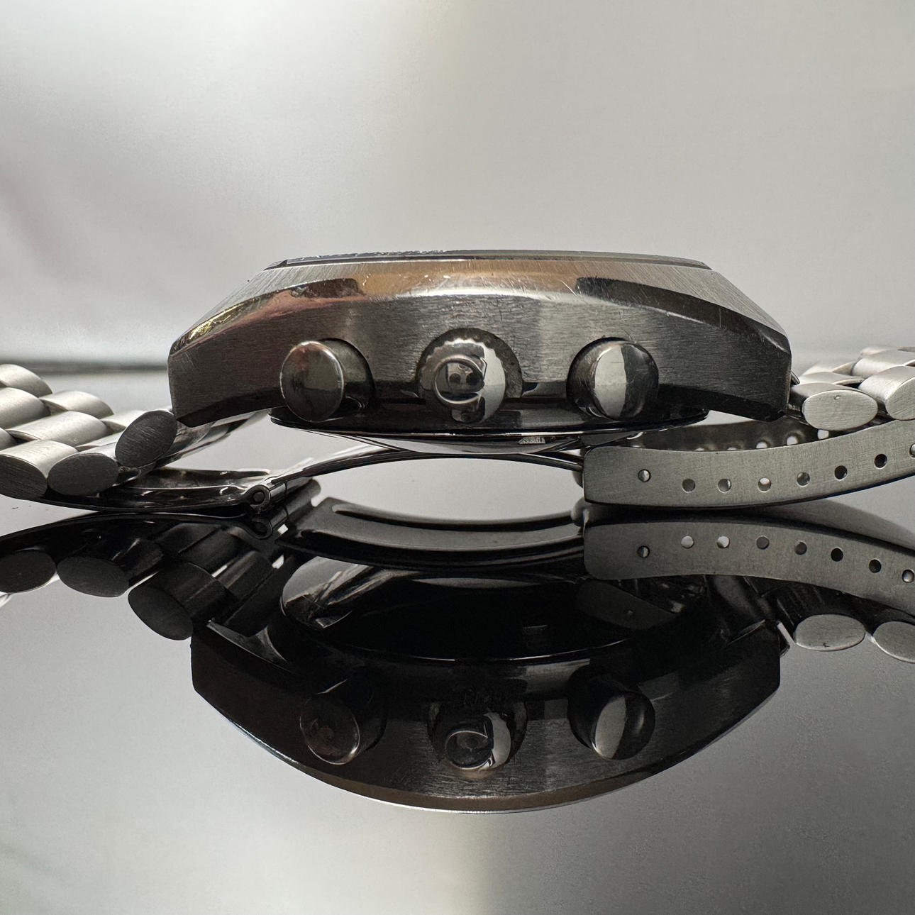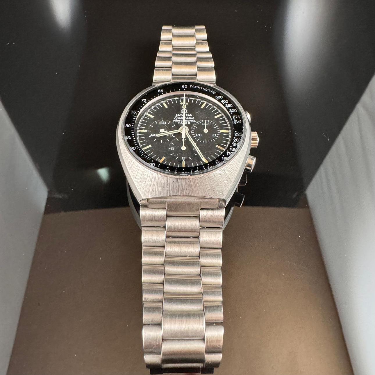 Tecken på slitage, repor på glas, lysande material på händer och index är färgade, klockan tog slut under inspektion, ingen garanti för funktionalitet.