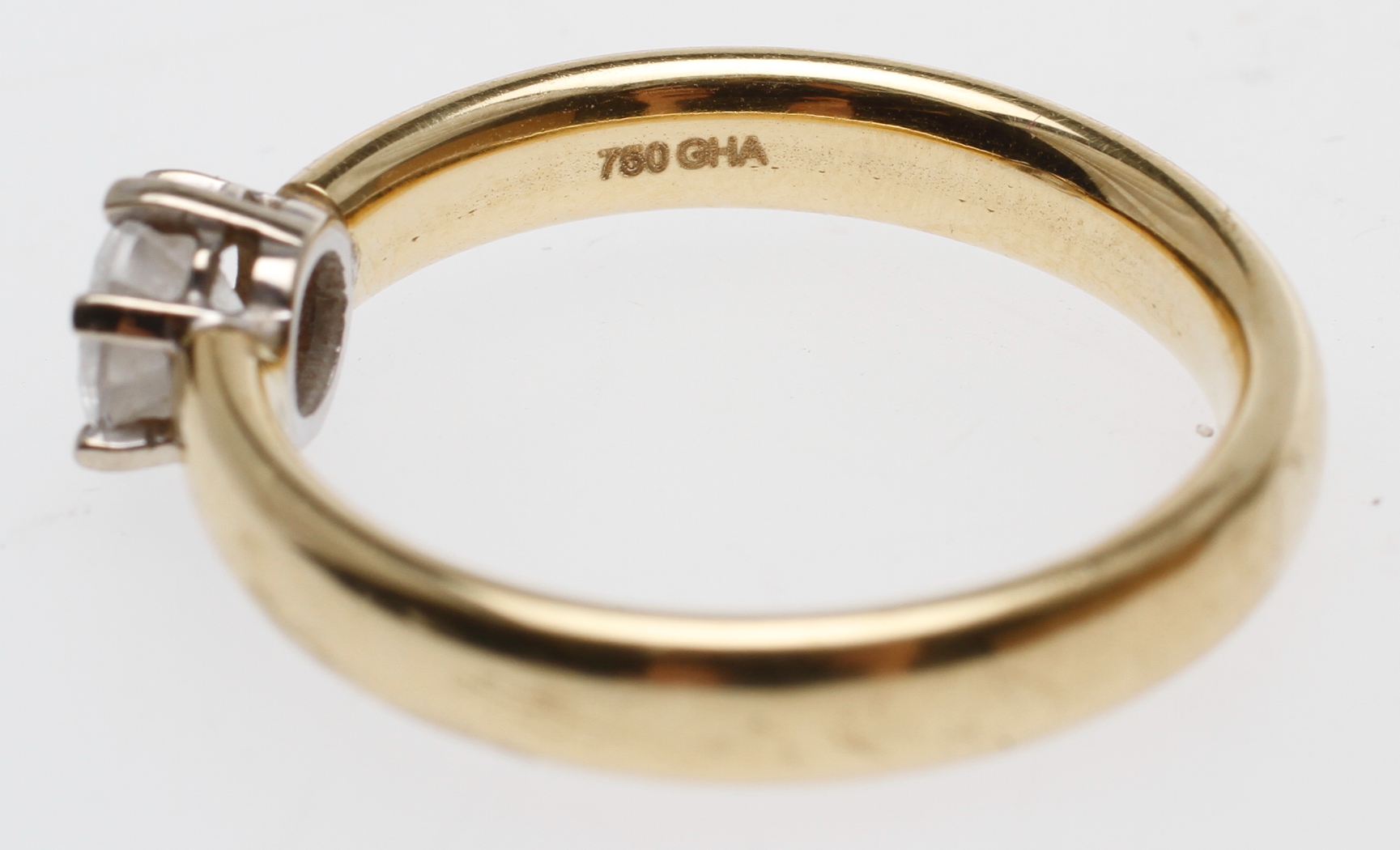 34061. RING, 18k guld med vit sten, vikt ca 2,7 gram.